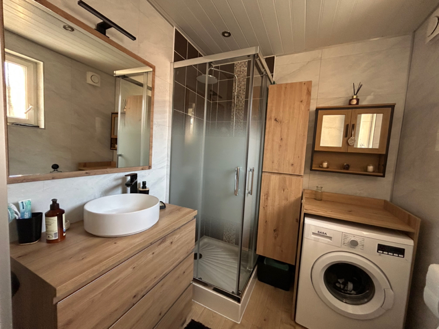 Au rez-de-chaussée, profitez d'une belle pièce de vie lumineuse de plus de 30 m2 avec cuisine ouverte sur le séjour-salon, ainsi qu'une salle de bains récemment rénovée, offrant un espace de vie pratique et conivivial.