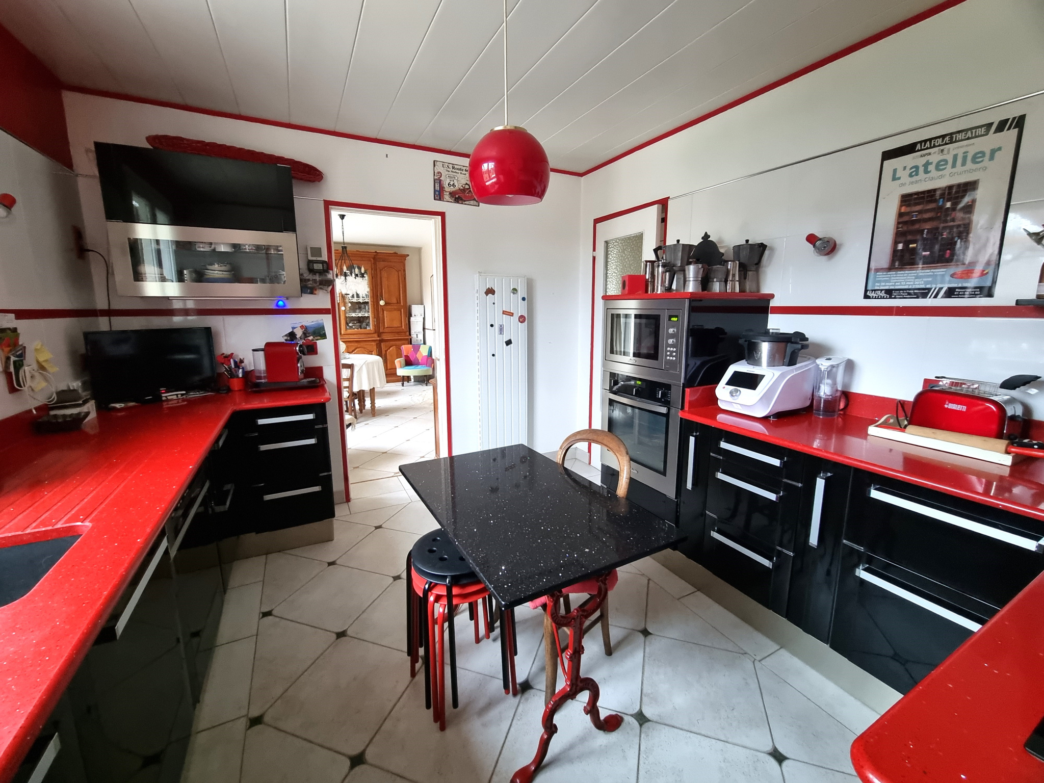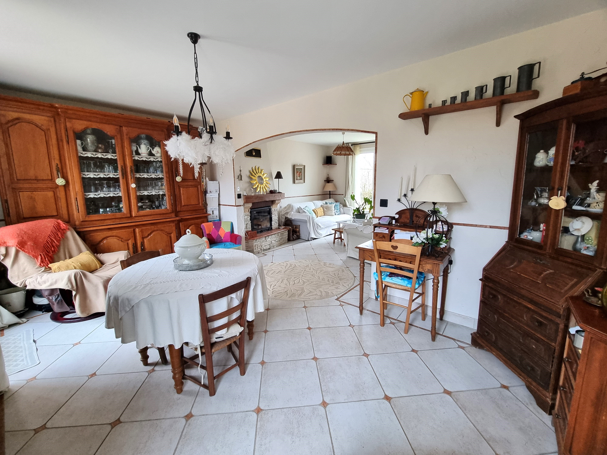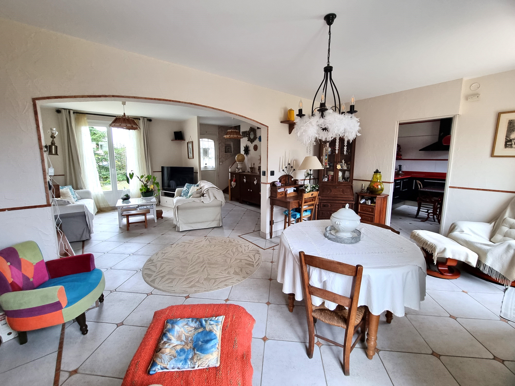 Dans un secteur calme et pavillonnaire, Maison individuelle d'environ 130m2 habitables (150m2 environ au sol), offrant de beaux volumes, comprenant au rez-de-chaussée : une entrée, un séjour-salle à manger d'environ 31m2 avec cheminée-insert et récupérateur de chaleur, une cuisine aménagée et équipée, une chambre, un WC avec lave-mains. A l'étage : une pièce palière, 4 chambres, une salle de bains avec wc, une salle d'eau. Garage attenant avec espace buanderie/cellier. Un 2nd garage d'environ 30m2. Un bûcher. Terrasse et Terrain sans vis-à-vis d'environ 728m2.