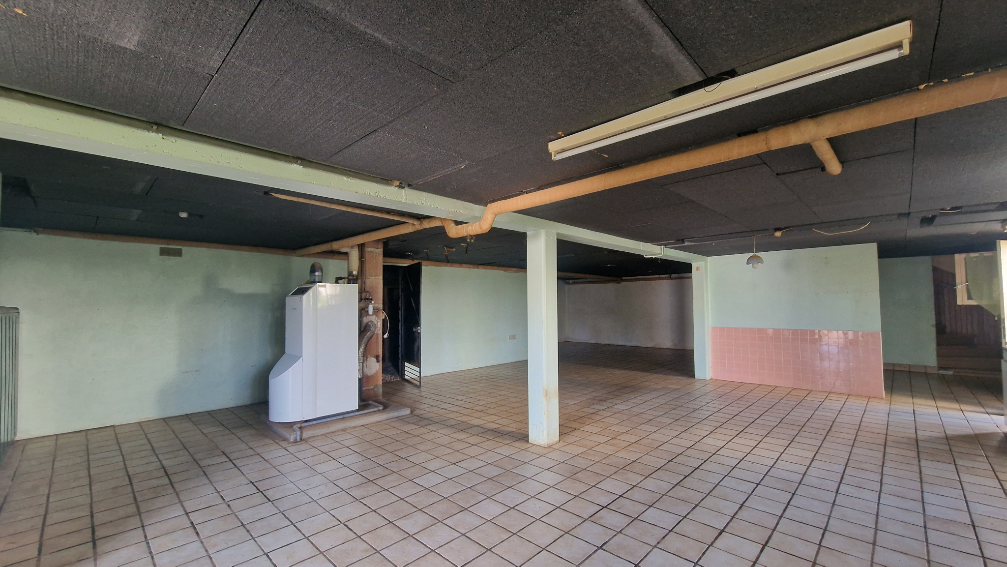 Le sous-sol offre une surface généreuse pouvant servir d'espace de stockage ou être aménagée pour différentes activités. Il comprend aussi une cave, un WC et une chaufferie.