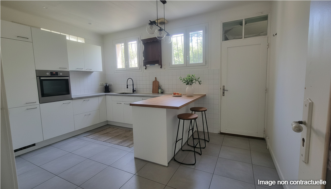 Une jolie rénovation, complète, saura valoriser cette maison de 1962, construite sur vide-sanitaire, qui se compose d'un hall d'entrée, un salon/séjour avec une grande cuisine attenante, totalisant 44 m2. Pour le pôle nuit; au gré de vos besoins, vous pourrez conserver les 5 chambres existantes ou redistribuer en 3 chambres et une belle suite parentale. un WC et une SDE.