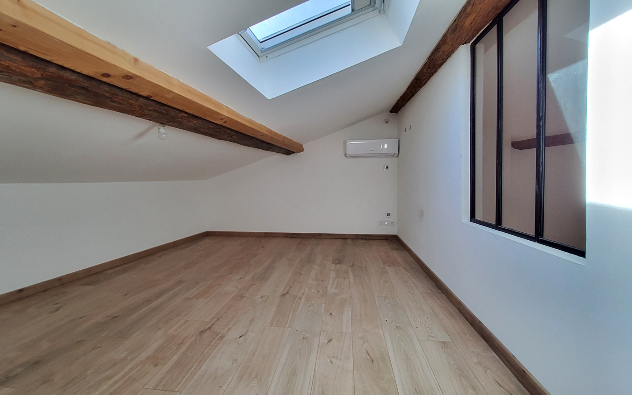 Au rez-de-chaussée, une entrée avec cellier/cave privatif. Au premier étage, découvrez une vaste pièce de vie lumineuse avec une trés belle hauteur sous plafond d'environ 34 m2 comprenant un salon-séjour et une cuisine ouverte, ainsi qu'une salle d'eau avec wc et un coin buanderie. À l'étage supérieur, une seconde chambre mansardée offre un espace nuit supplémentaire, idéal pour un bureau ou une chambre d'enfant.