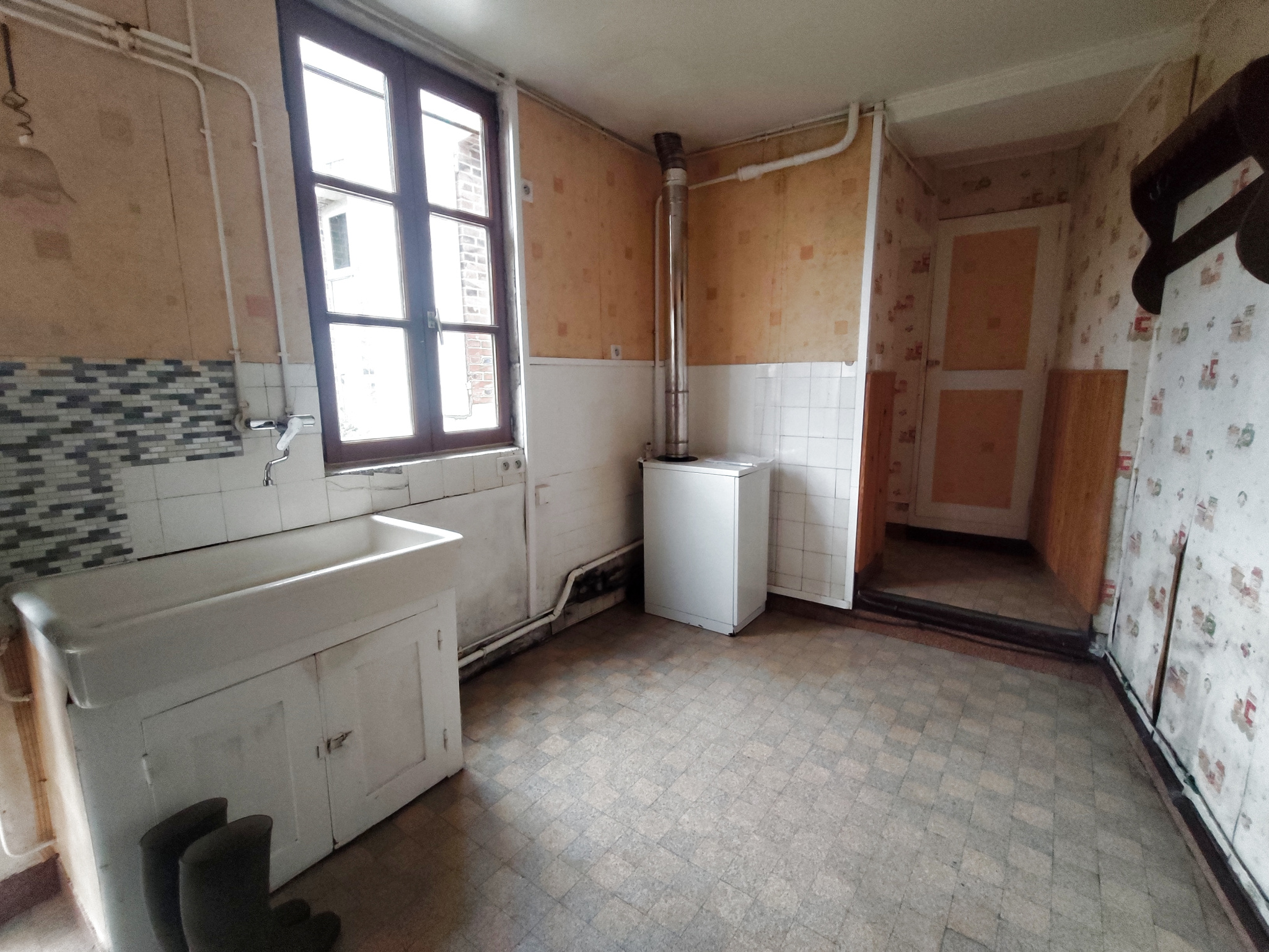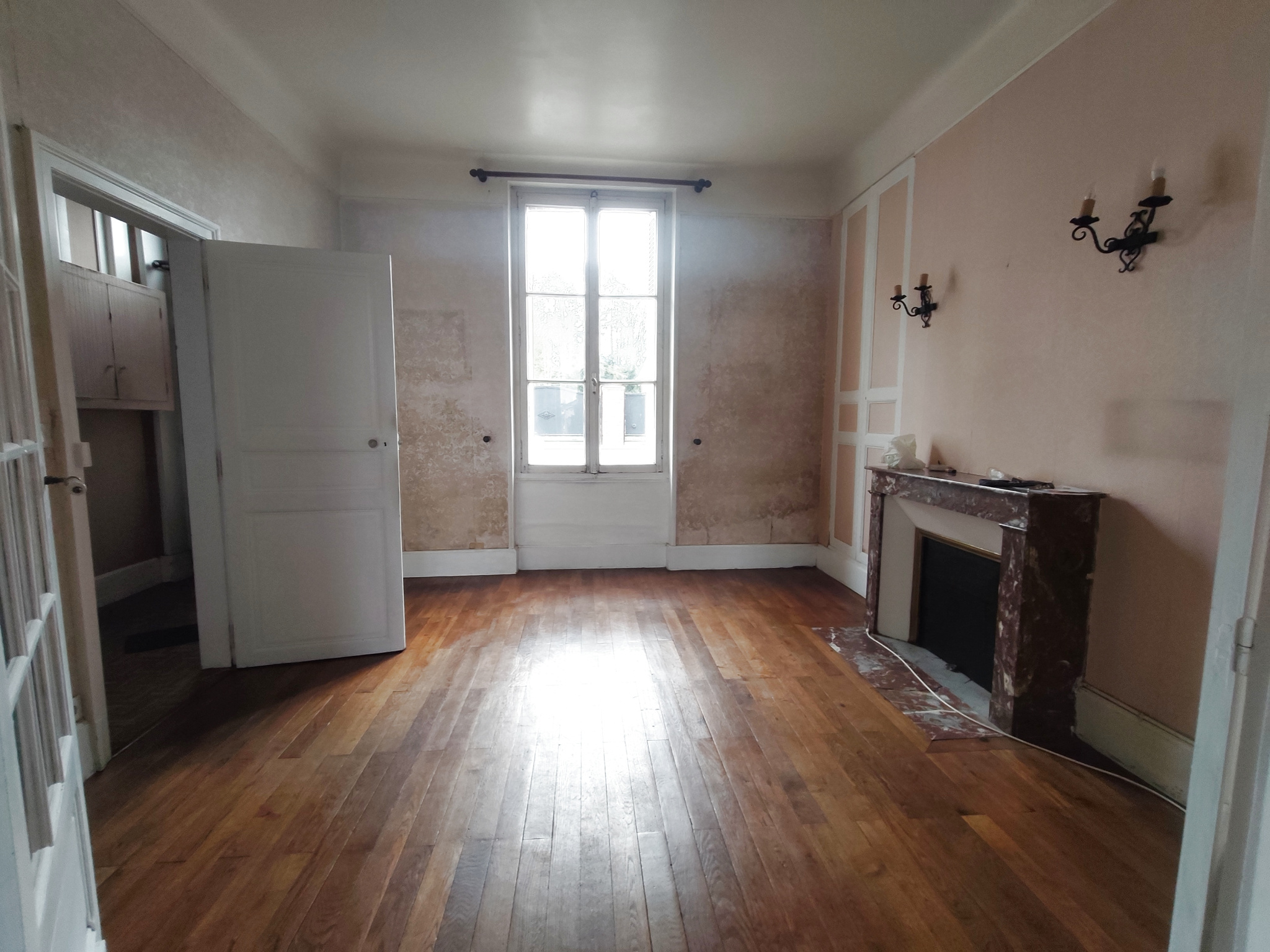 Maison de caractère posée sur un terrain clos de 412m2 comprenant : Couloir, salon-séjour, cuisine, 2 chambres (parquet), salle de bain wc, Etage : grenier cellier, cave, garage