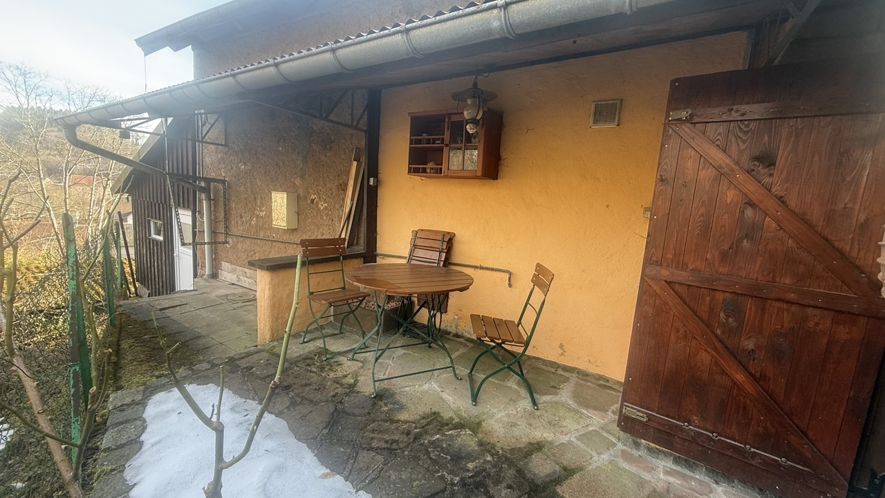Terrasses protégées à l'avant et à l'arrière de la maison, accès petit atelier depuis la terrasse arrière, petit jardin minéralisé.