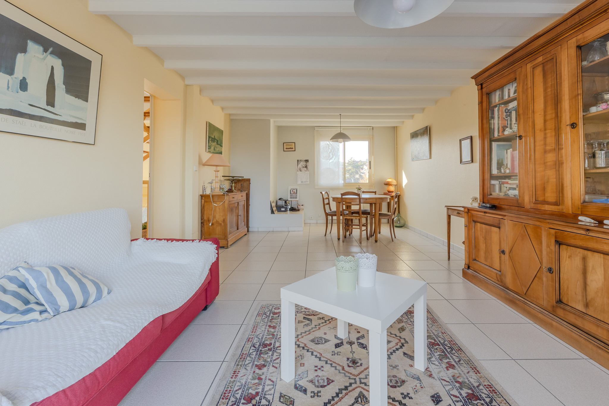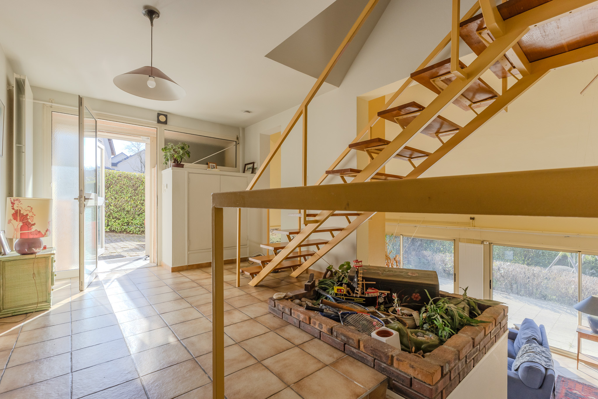 Belle maison d'architecte au calme et en bordure d'une coulée verte, à rafraichir, bénéficiant de volumes intéressants, salon et salle à manger avec grandes baies sur terrasses et nature, quatre ou cinq chambres, possibilité studio indépendant, garage de plain-pied, partie sous-sol. Venez la visiter vous serez séduits par son environnement!