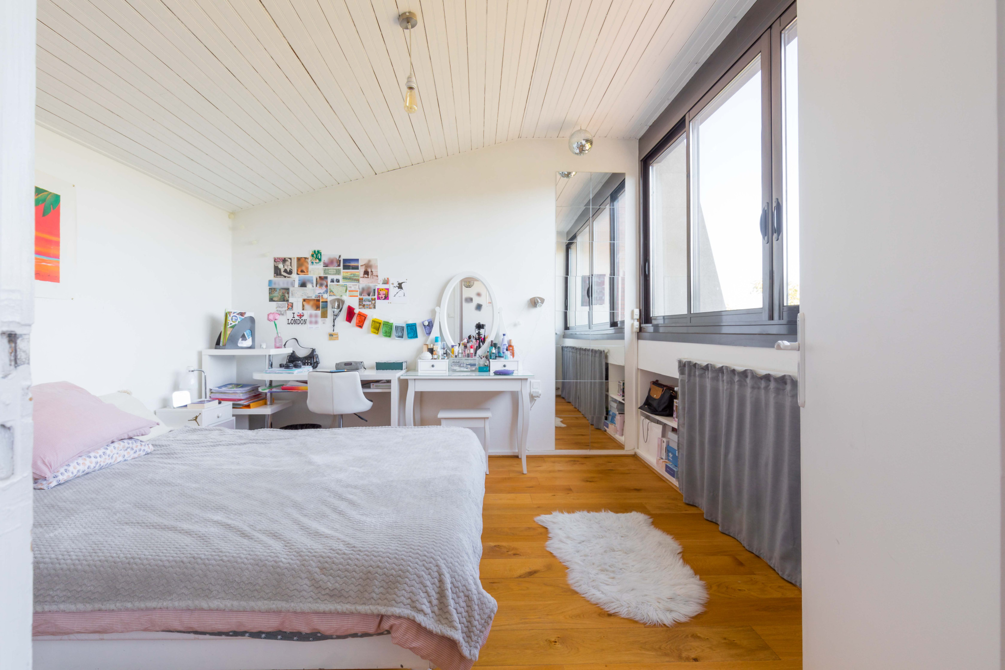 1 chambre avec baie coulissante sur balcon, salle de bains, wc indépendants.