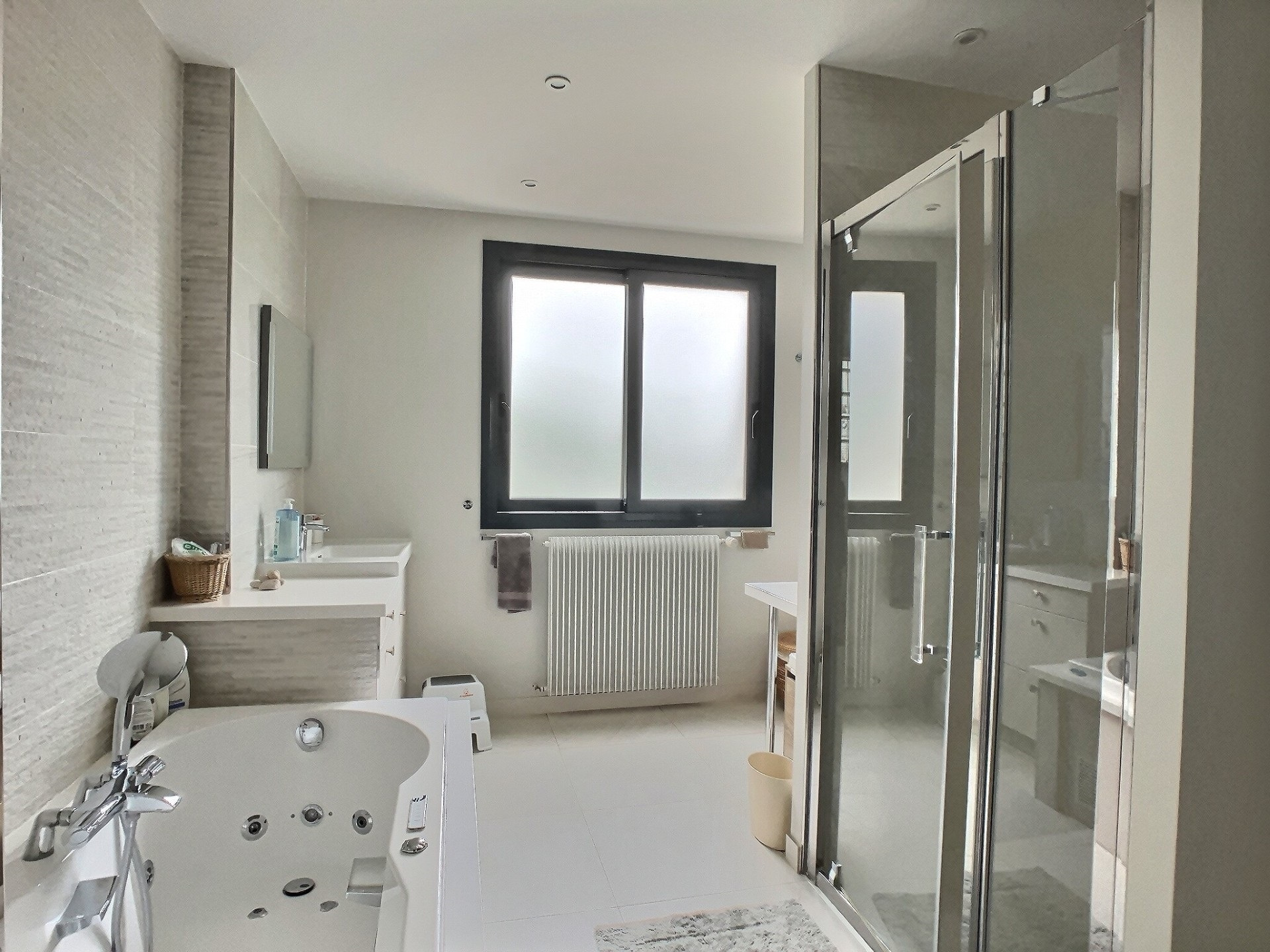 A l'étage, le palier dessert quatre chambres (28, 18, 15 et 15 m2) et une salle de douche avec baignoire.