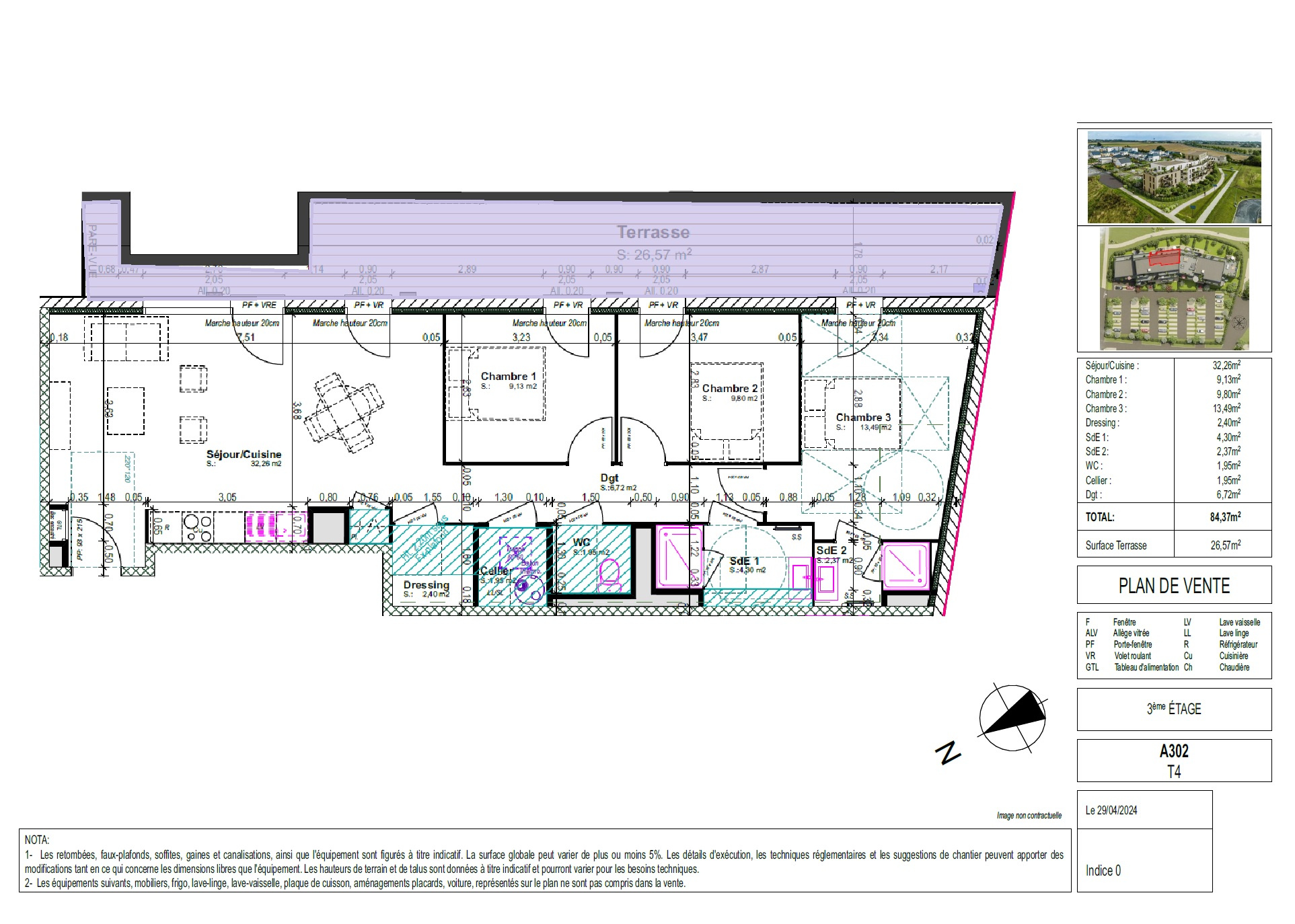 Nuances Immobilières vous propose à Blainville sur Orne à deux pas du centre commercial et de ses commerces, un appartement de type 4Pièces de 84m2 exposé Est et Sud au 3ème étage avec ascenseur offrant une terrasse de 26m2.