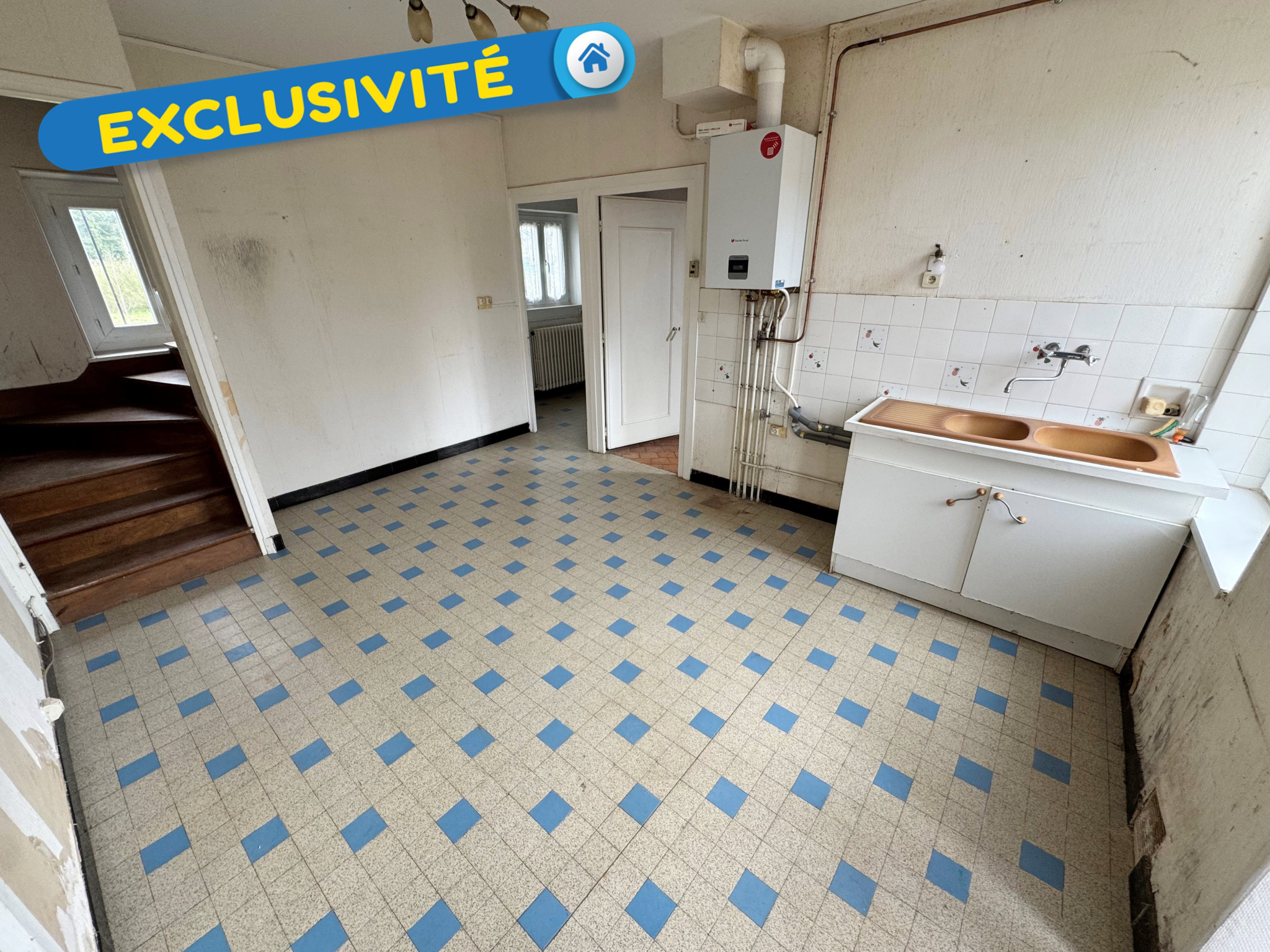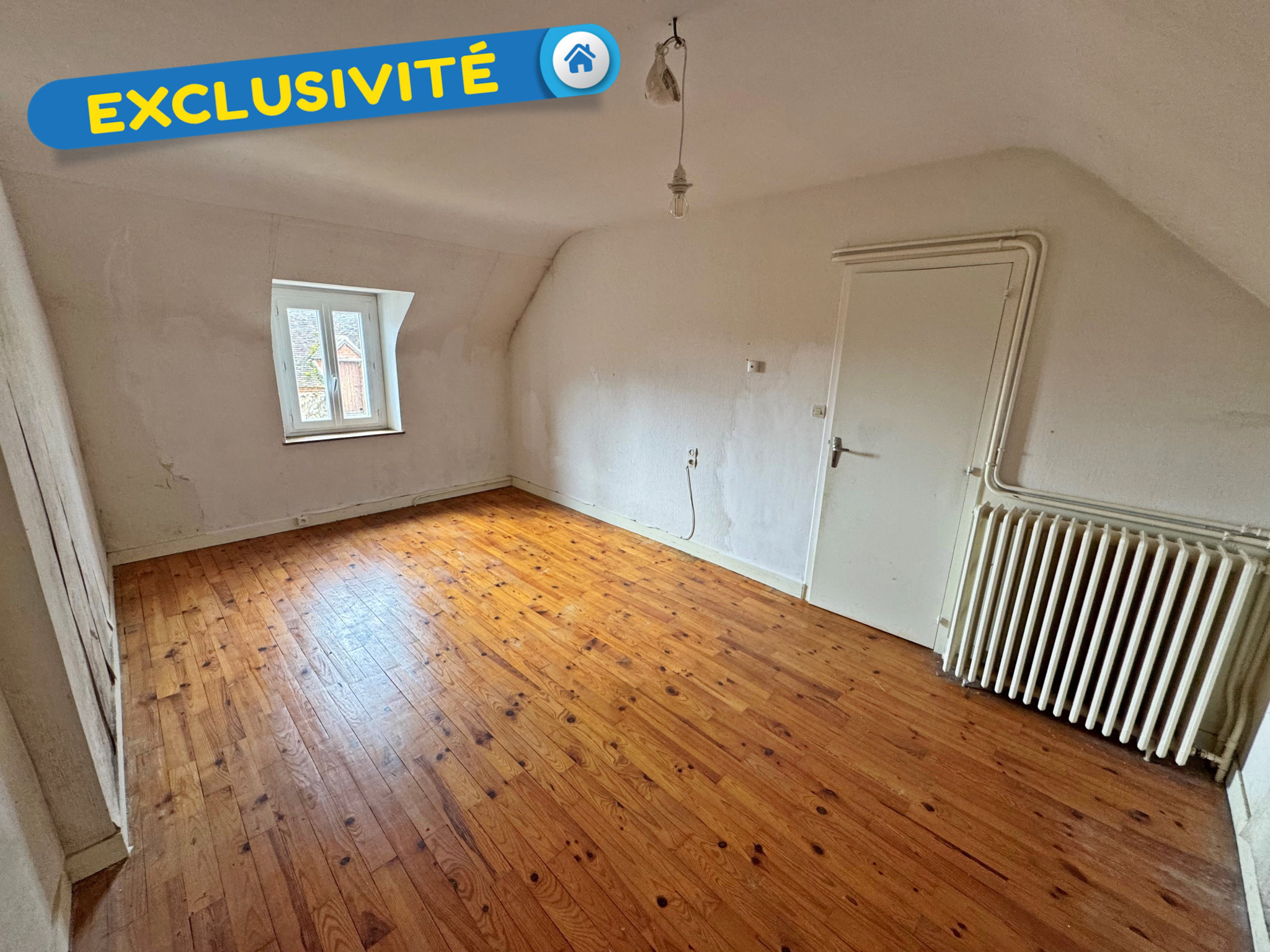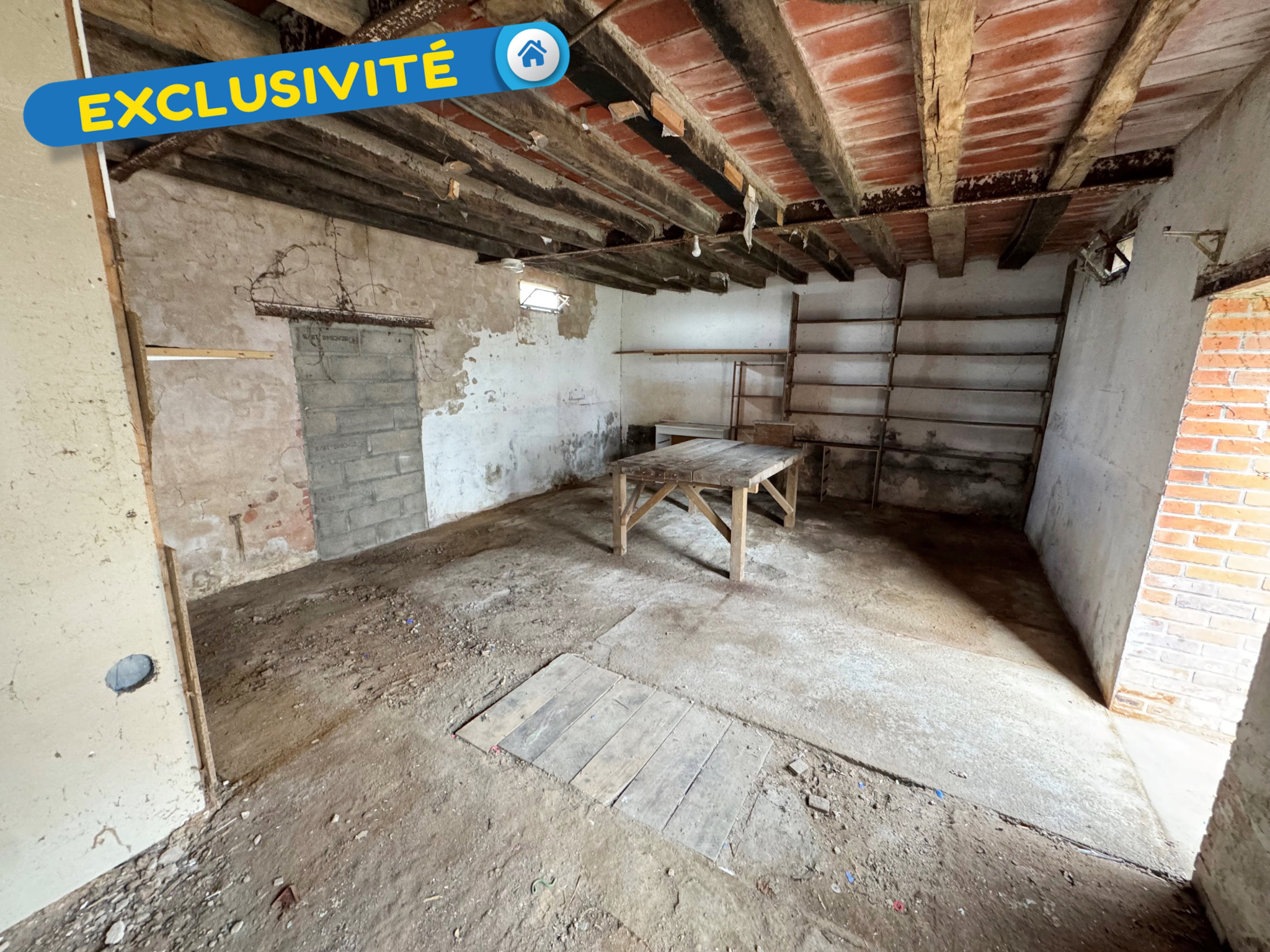 Exclusivite ! Ferme ancienne sur la commune de Saint Martin d'Abbat comprenant au rez-de-chaussée : cuisine, séjour-salon, salle de bains, WC, une chambre puis à l'étage : palier et trois chambres.