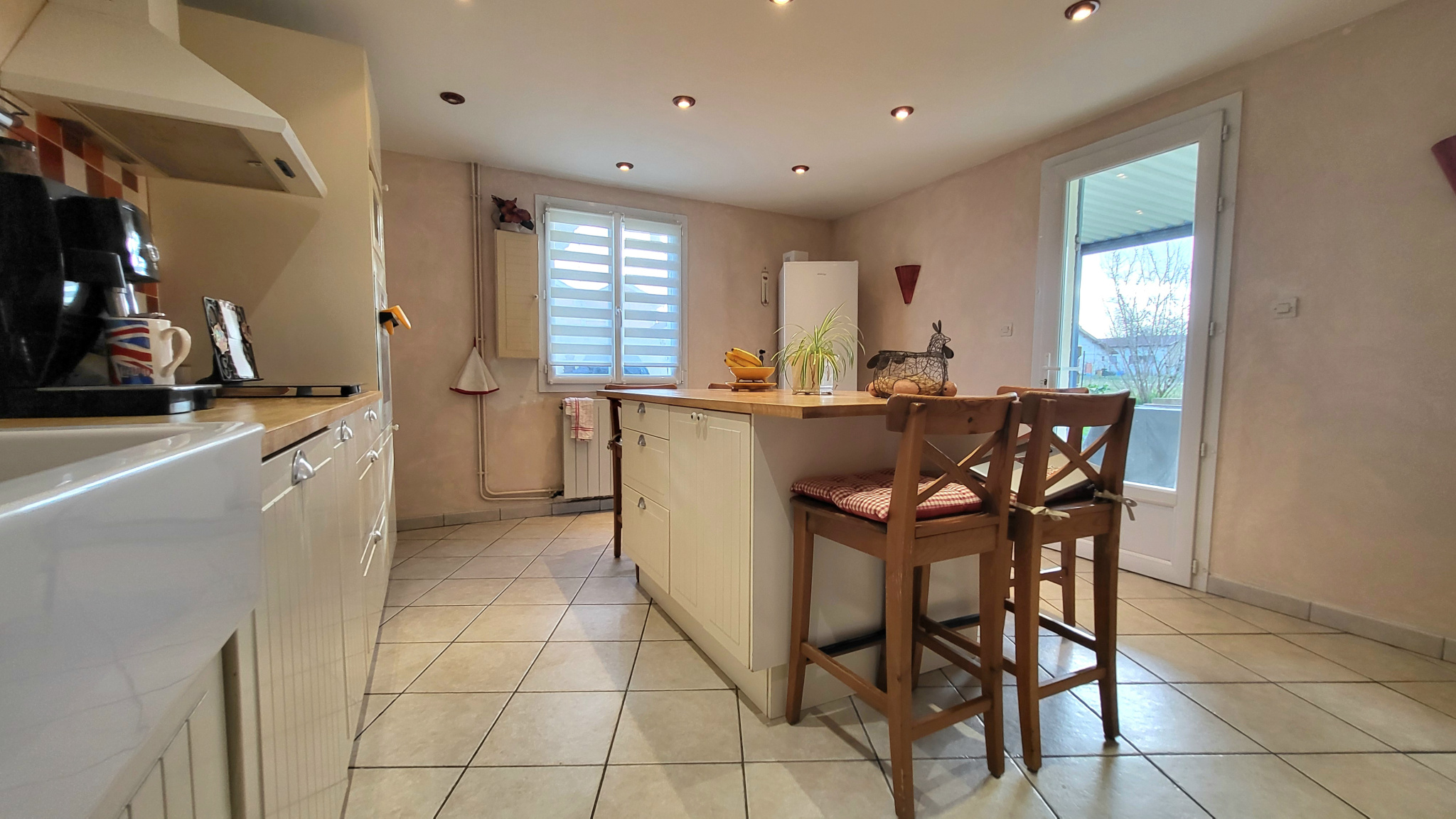Dès l'entrée, la maison dévoile une atmosphère chaleureuse typique des bâtisses en pierre. Le rez-de-chaussée accueille notamment un salon-salle à manger de plus de 31 m2, un espace convivial et lumineux permettant de profiter de moments en famille ou entre amis. La cuisine aménagée, fonctionnelle et tournée vers l'extérieur, s'ouvre directement sur une terrasse agrémentée d'une pergola bioclimatique, créant un espace de vie supplémentaire particulièrement agréable dès les beaux jours.