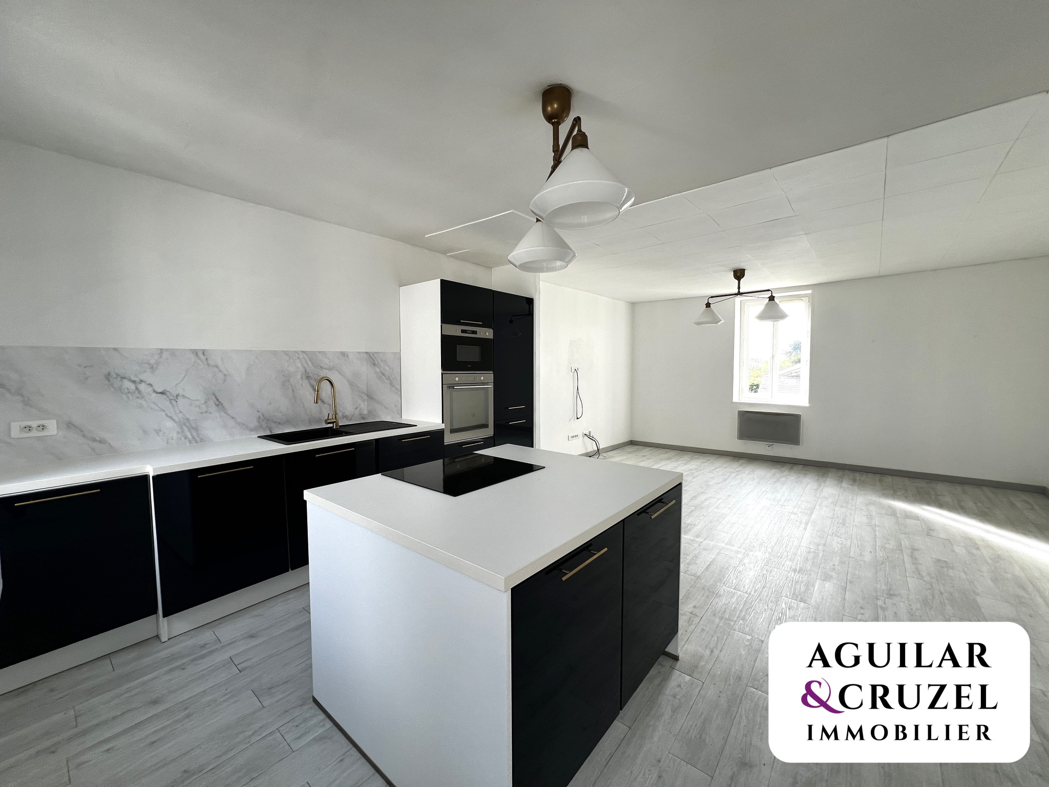 Le premier étage rénové, accueille un agréable appartement composé d'un bel espace de vie très lumineux avec cuisine aménagée et équipée, d'une chambre, d'une salle de bains et d'un WC indépendant.