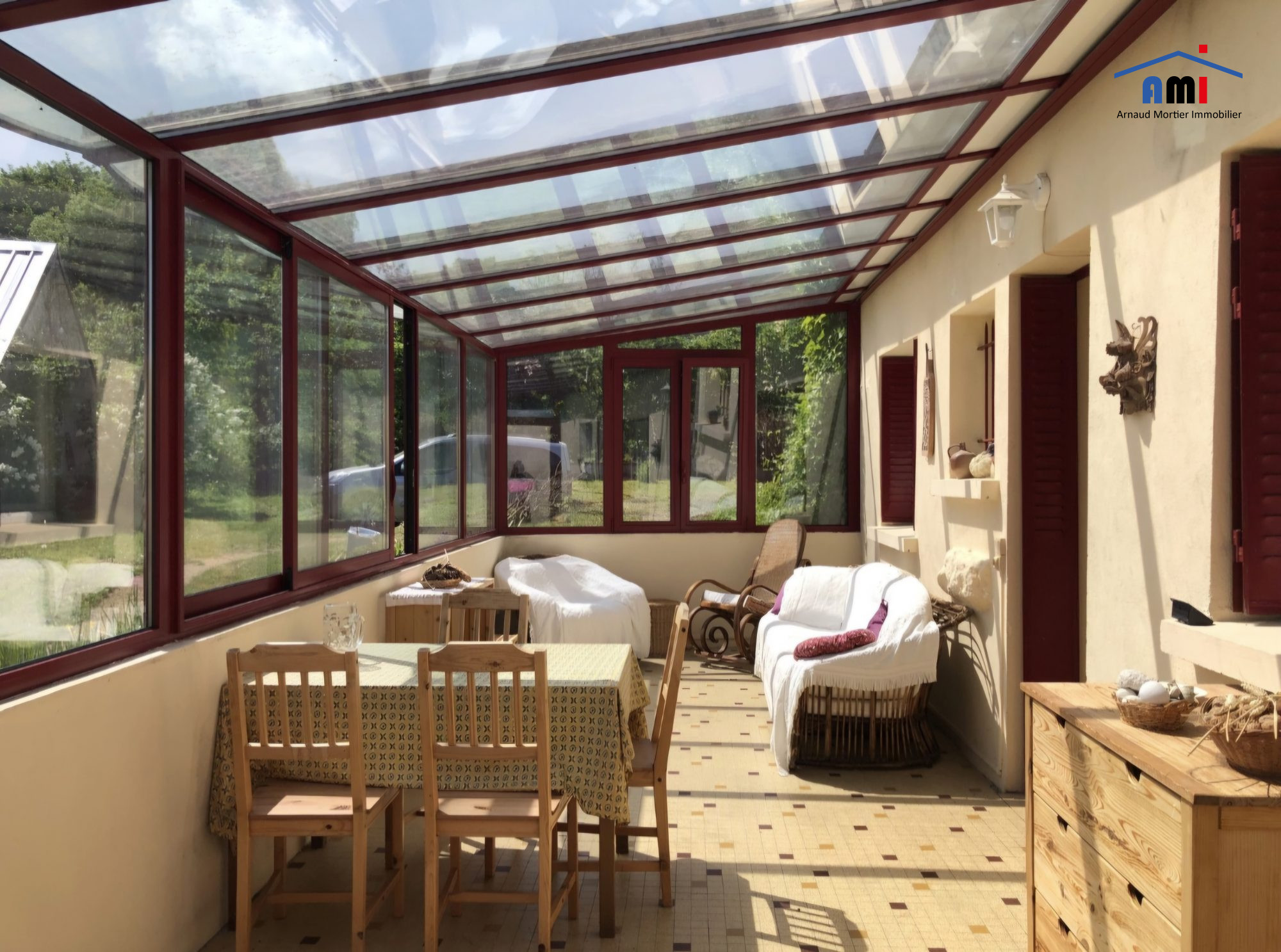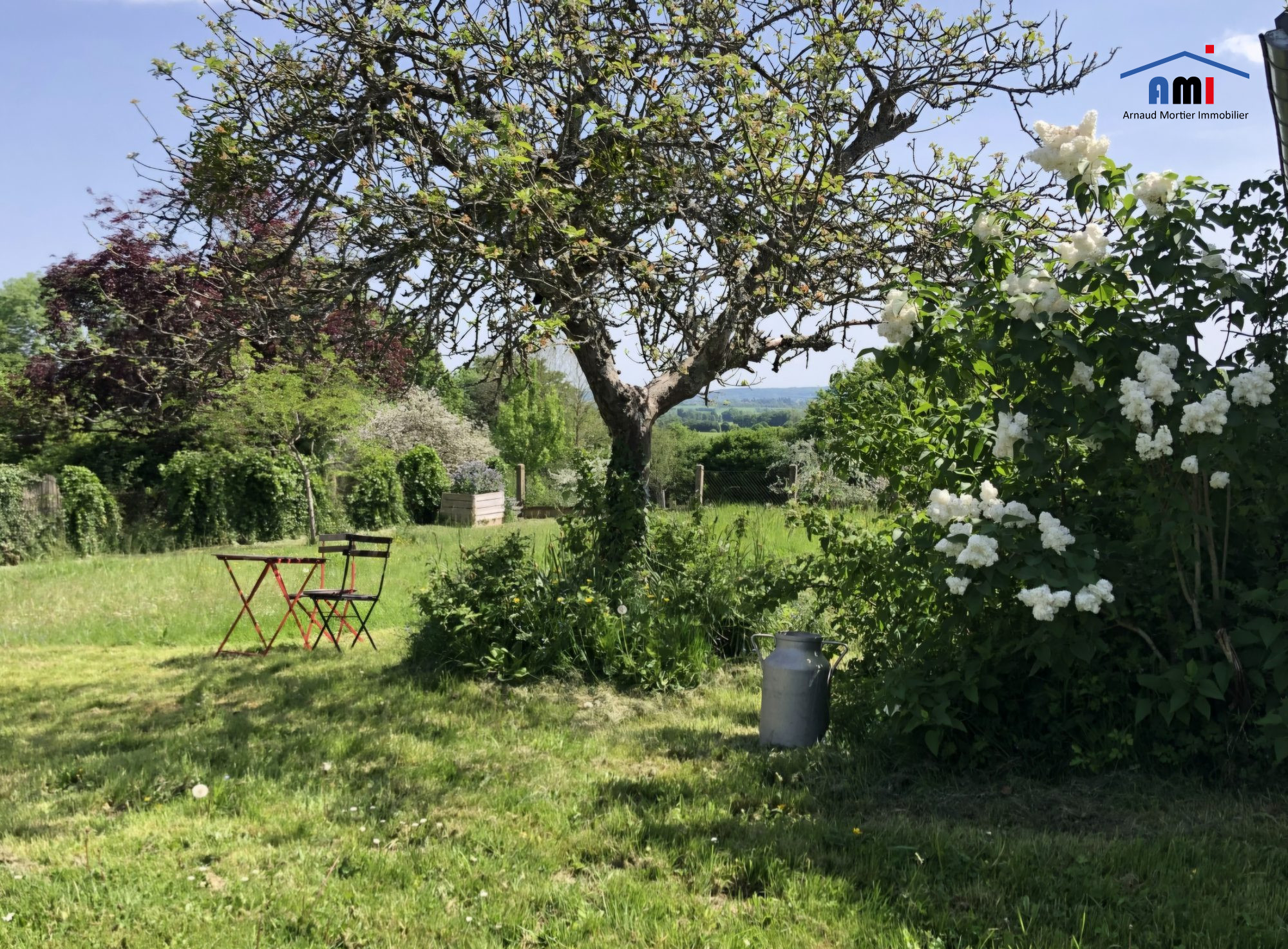 Maison ancienne couverte en tuiles de pays avec jardin arboré d'environ 900 m².