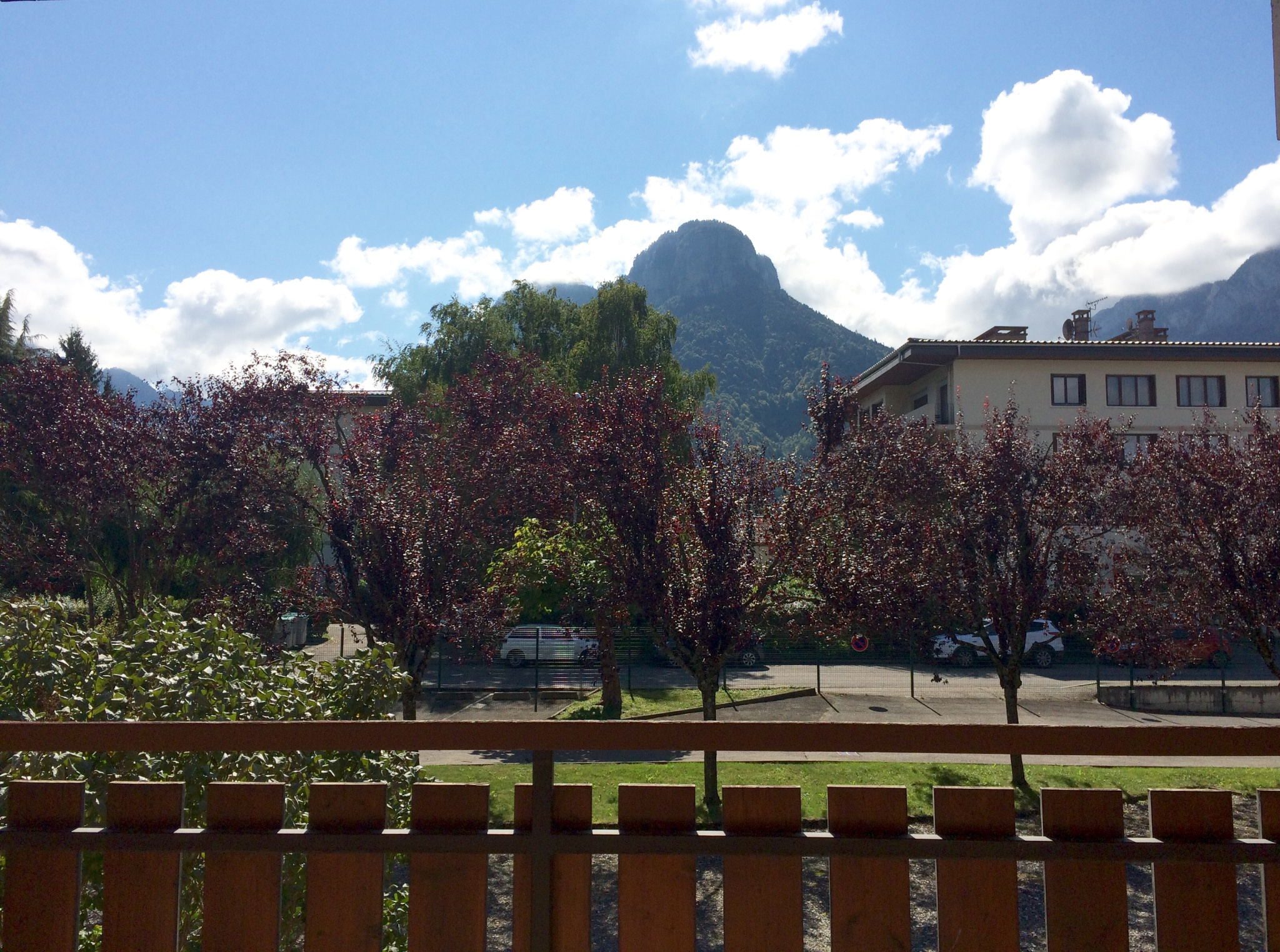 Un balcon exposé plein sud offre une vue dégagée sur les montagnes, véritable atout.