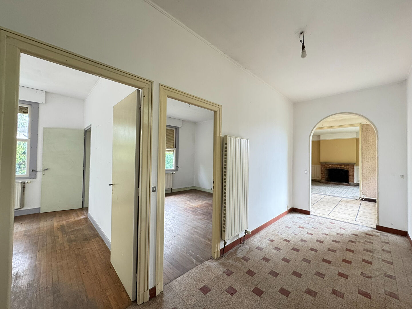 Au coeur du Vieux Bezannes, à 10 minutes du centre-ville rémois, emplacement convoité pour cette maison à rénover (ou à agrandir) implantée au centre d'un vaste terrain arboré de plus de 1200 m², en retrait des agitations. L'ensemble des pièces se trouve sur le même niveau, l'entrée ouvre sur une petite cuisine puis salon avec très jolie cheminée ancienne, salle de séjour traversante offrant une vue imprenable sur la forêt (zone boisée classée), large couloir (ou coin bureau) desservant deux grandes chambres de 16.5 m², une salle de bains, WC séparés. Très beau potentiel, la maison profite du charme de l'ancien (carreaux de ciment, cheminée) et de très beaux volumes (hauteur sous plafond de 3 mètres), dans un cadre paisible !
