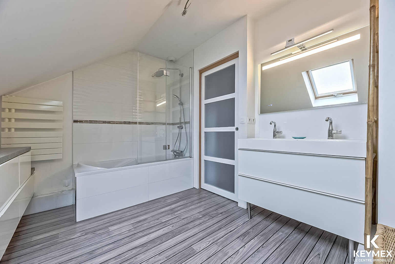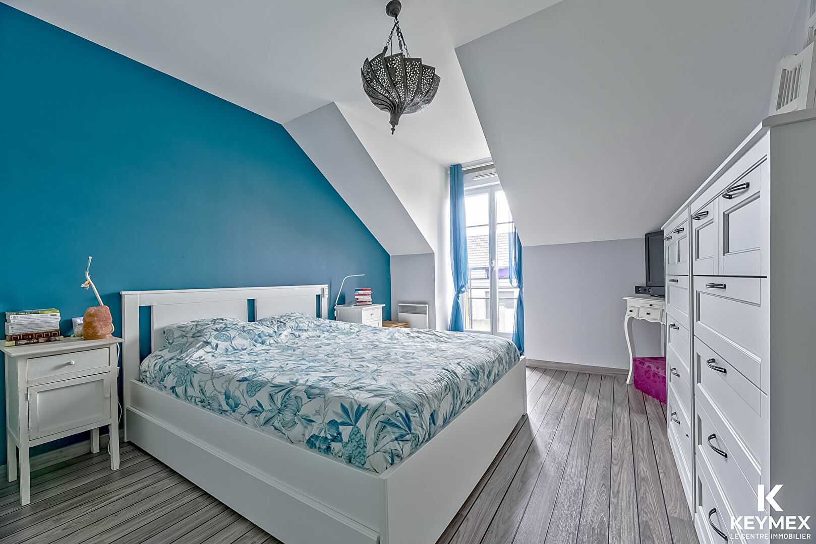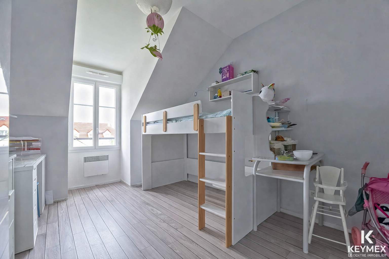 À l'étage, une belle pièce palière dessert trois chambres lumineuses dont deux avec rangements, ainsi qu'une grande salle de bains, pensée pour le confort.