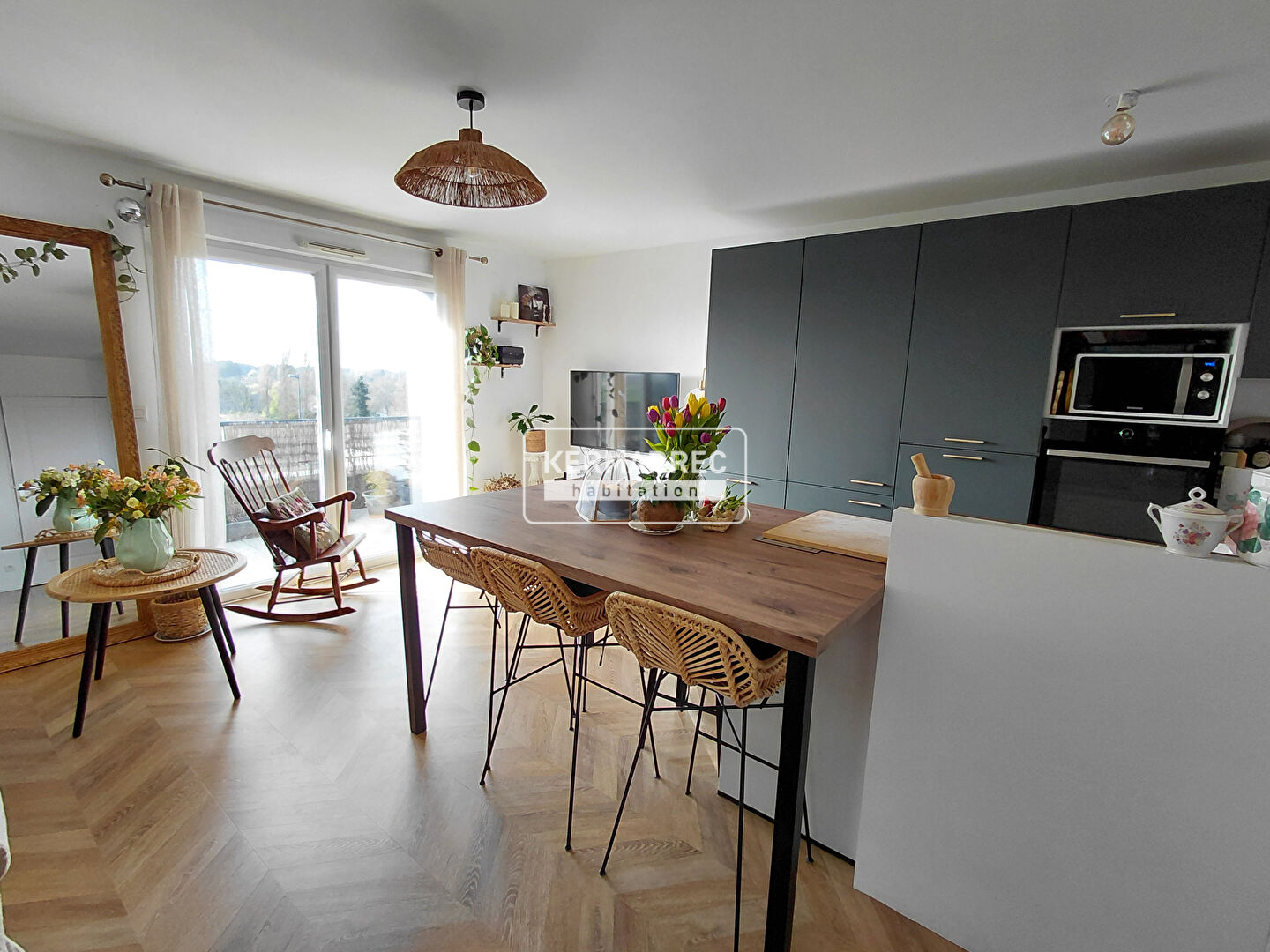 Les amateurs de cuisine apprécieront particulièrement la "vraie cuisine", pensée pour partager et recevoir, loin des simples kitchenettes. Le séjour s'ouvre sur une superbe terrasse de plus de 15 m², sans vis-à-vis, idéale pour profiter des beaux jours. Deux chambres confortables et de nombreux rangements viennent parfaire l'appartement.