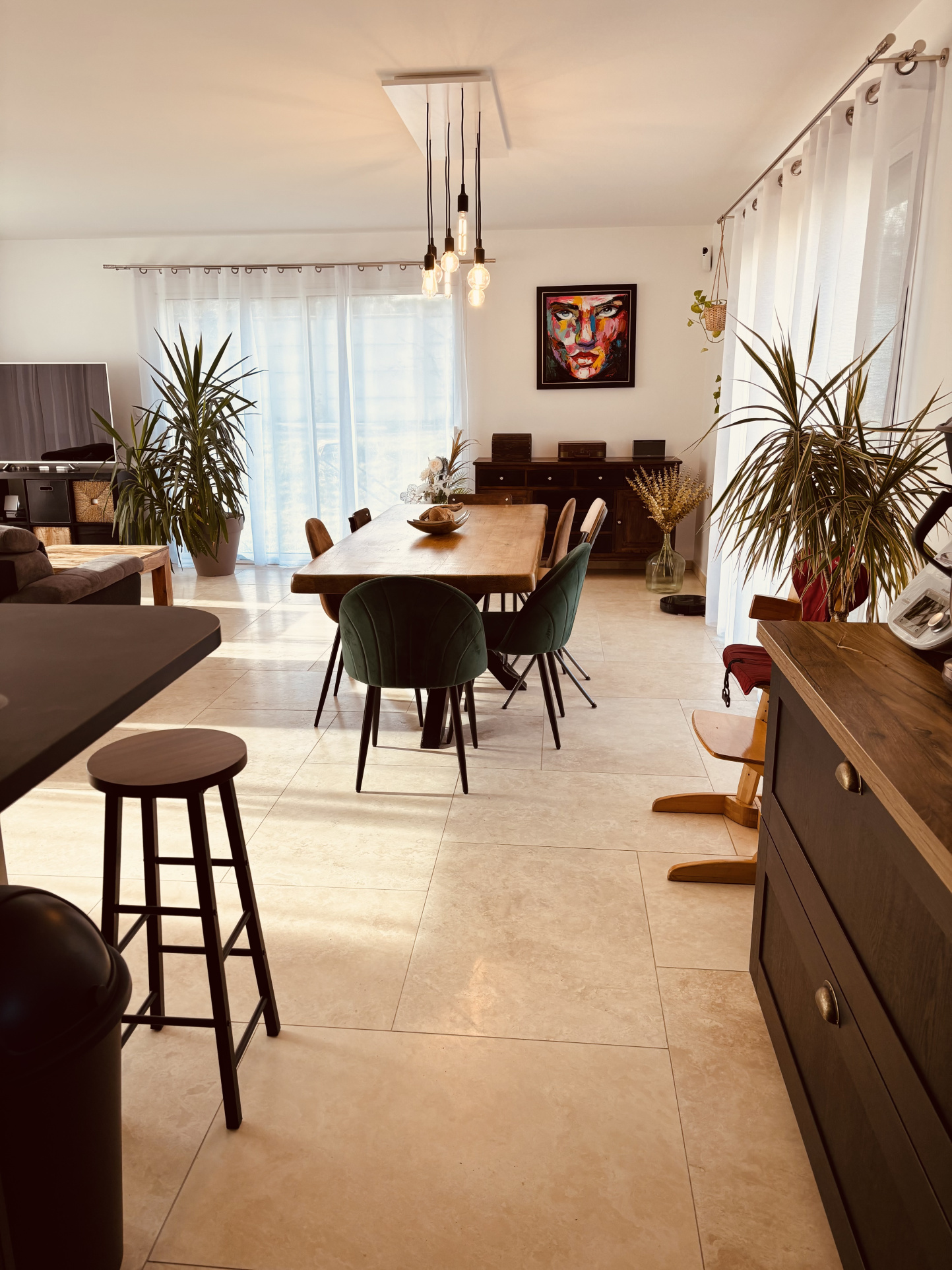 Au rez-de chaussée : une superbe pièce de vie de 65 m2 avec cuisine ouverte, 1 chambre avec dressing et salle d'eau 26 m2, 1 wc, un cellier.