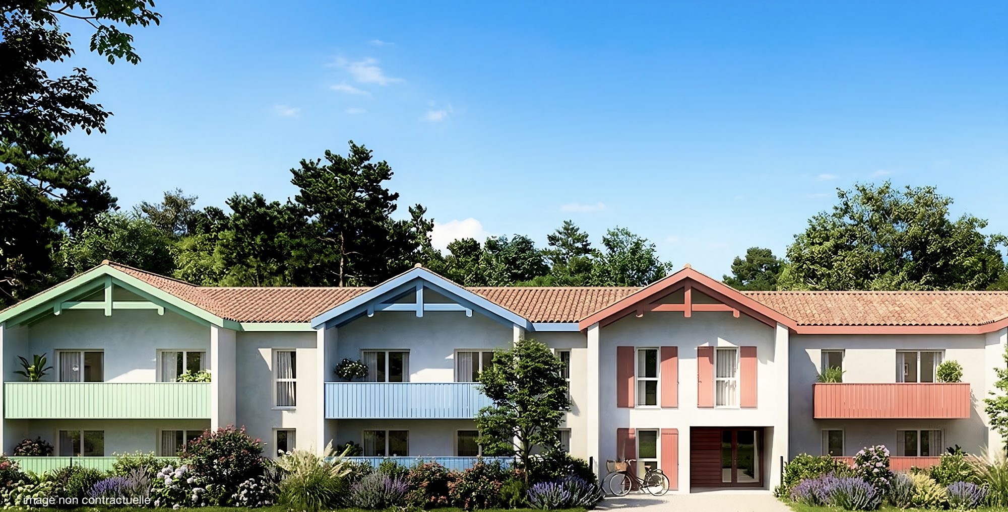 Petite résidence neuve pour début 2028, organisée autour d'un jardin paysager, votre logement reprend l'architecture locale.
