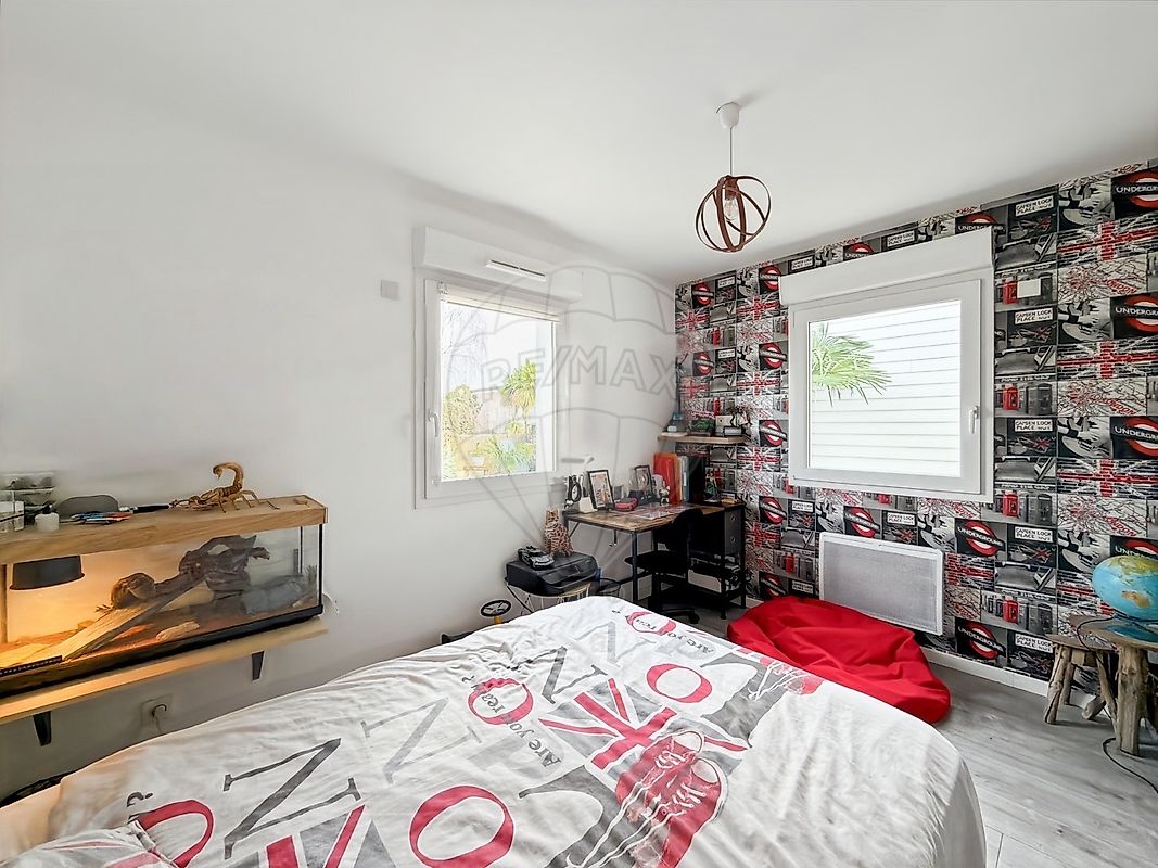 Le rez-de-chaussée accueille quatre chambres, une salle de bains, des WC indépendants ainsi qu’une buanderie spacieuse et fonctionnelle. À l’étage, une suite parentale de 19 m² au sol complète l’ensemble, avec dressing, salle d’eau et WC séparés.