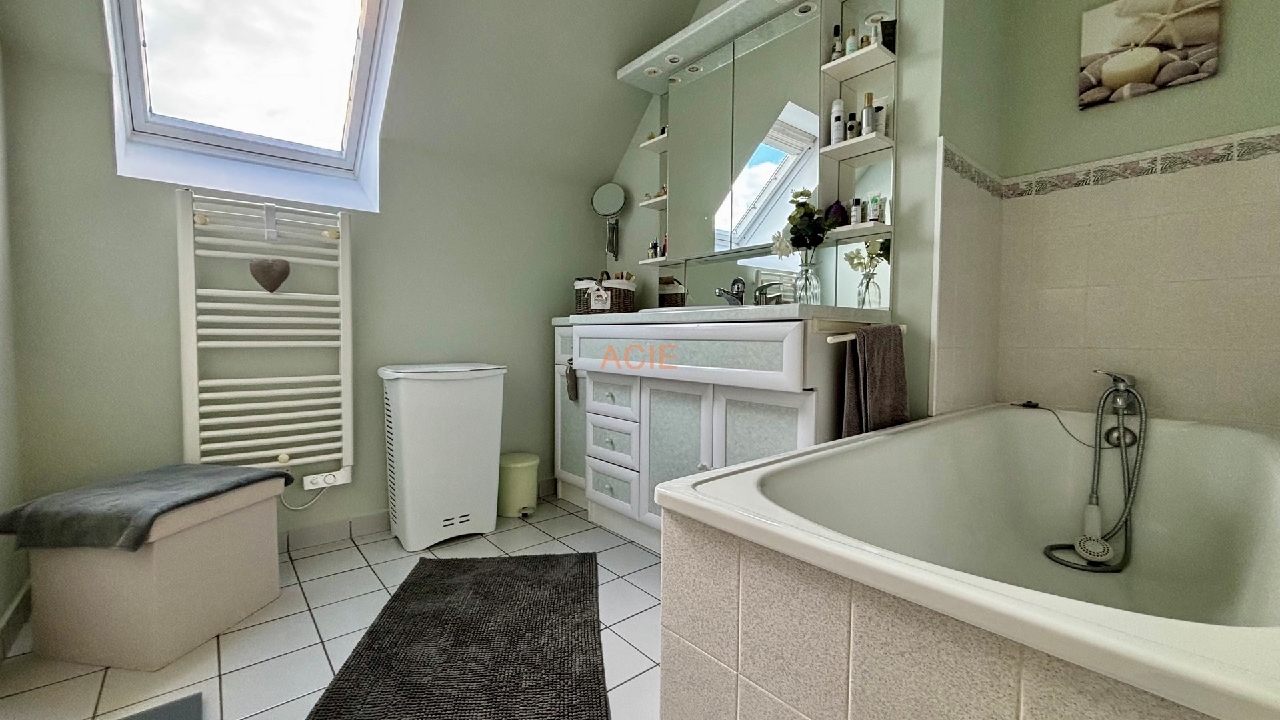 A l'étage : palier, 3 chambres dont une parentale avec salle d'eau, salle de bains.