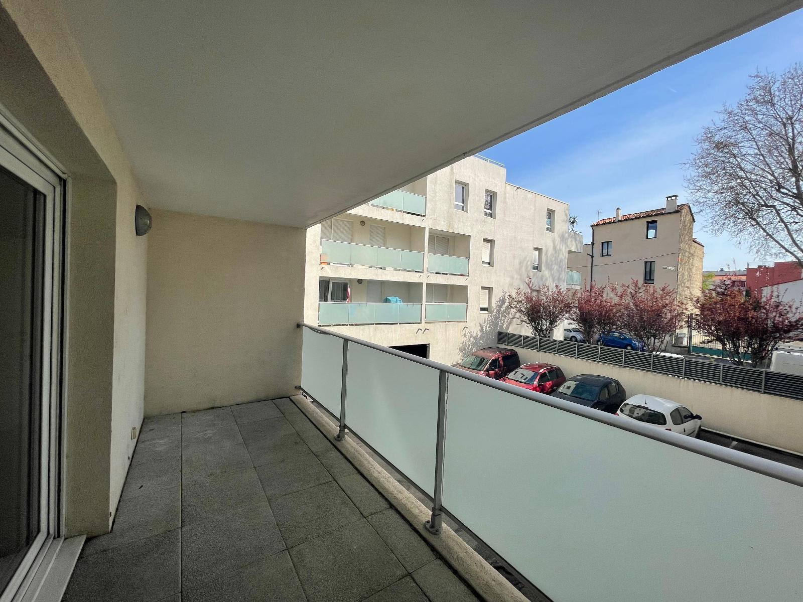 PERPIGNAN ST ASSISCLE / GRANDE BRETAGNE - Dans une résidence sécurisée et récente, Le Chelsea, avec ascenseur situé au 1er étage, bel appartement F3 en très bon état composé d'un grand séjour de 31.70 m² avec coin cuisine équipée donnant sur une terrasse couverte ensoleillée, 2 chambres, salle de bains et salle d'eau. Place de stationnement privative sécurisée. Honoraires à la charge du vendeur. Montant estimé des dépenses annuelles d'énergie pour un usage standard : entre 688 et 932 euros. Prix moyens des énergies indexés en 2021.