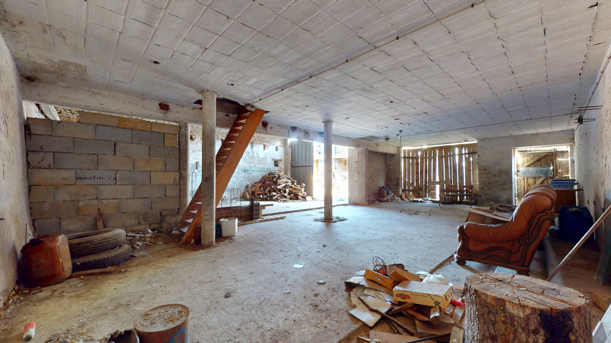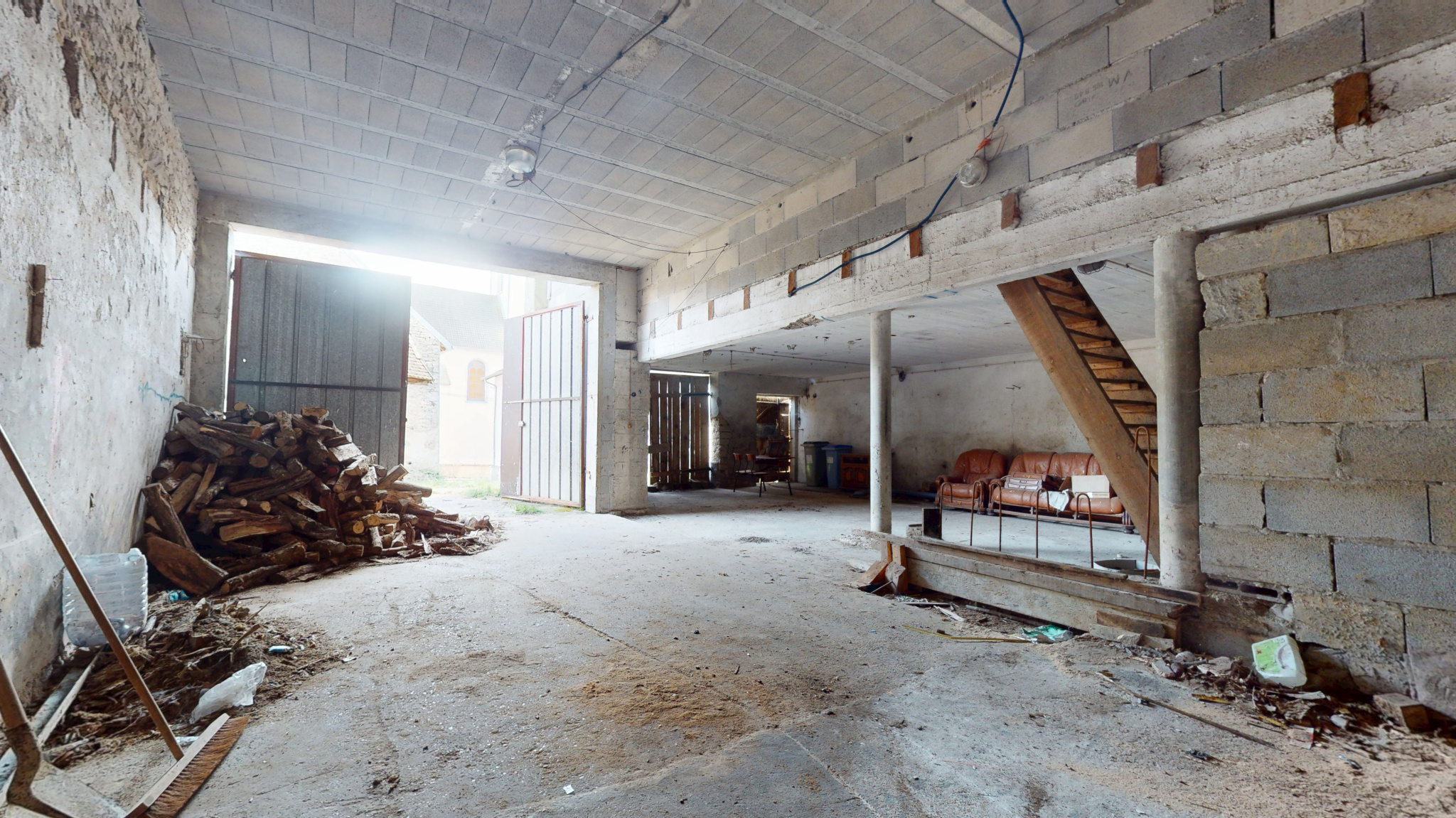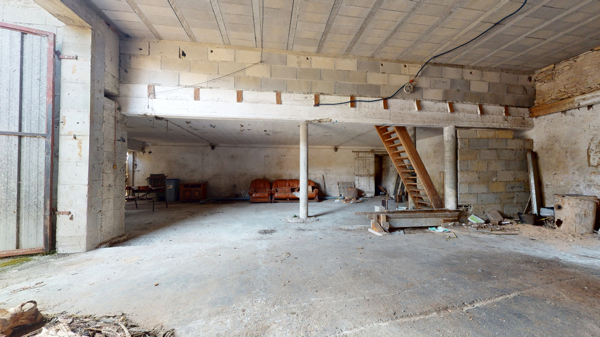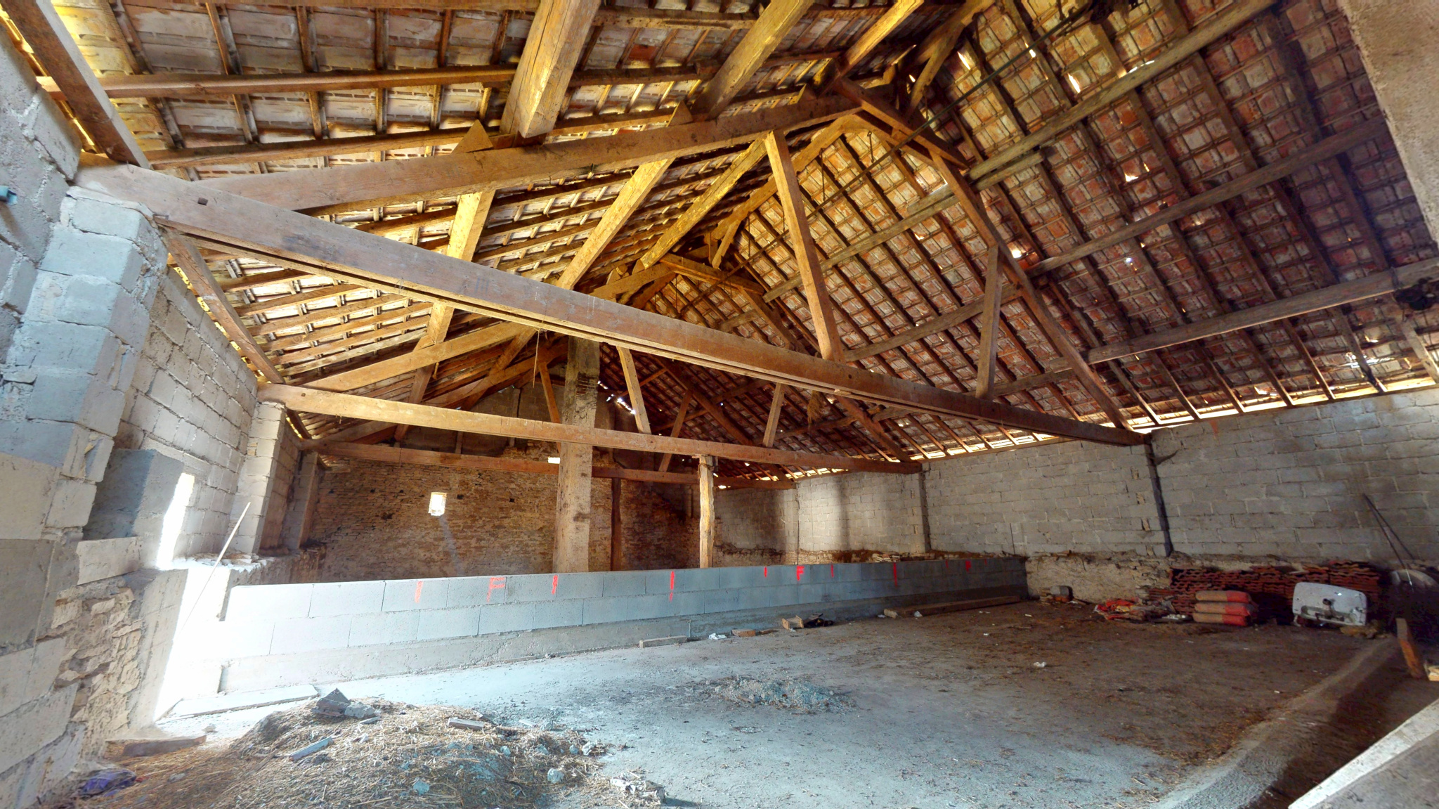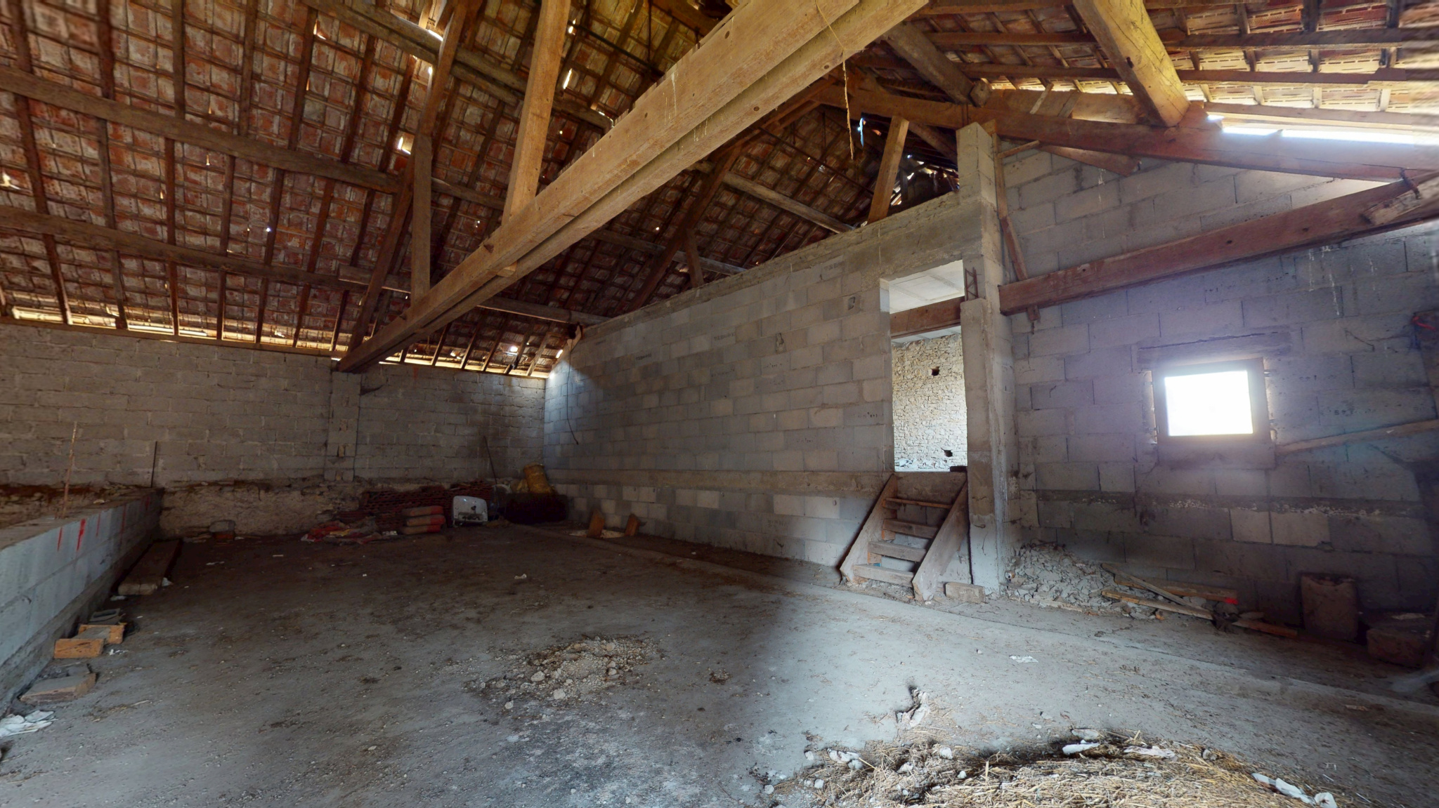 Il dispose d'un logement de 84 m2 et dépendances de belles surfaces (hangar 116 m2 et combles aménageables 270 m2).