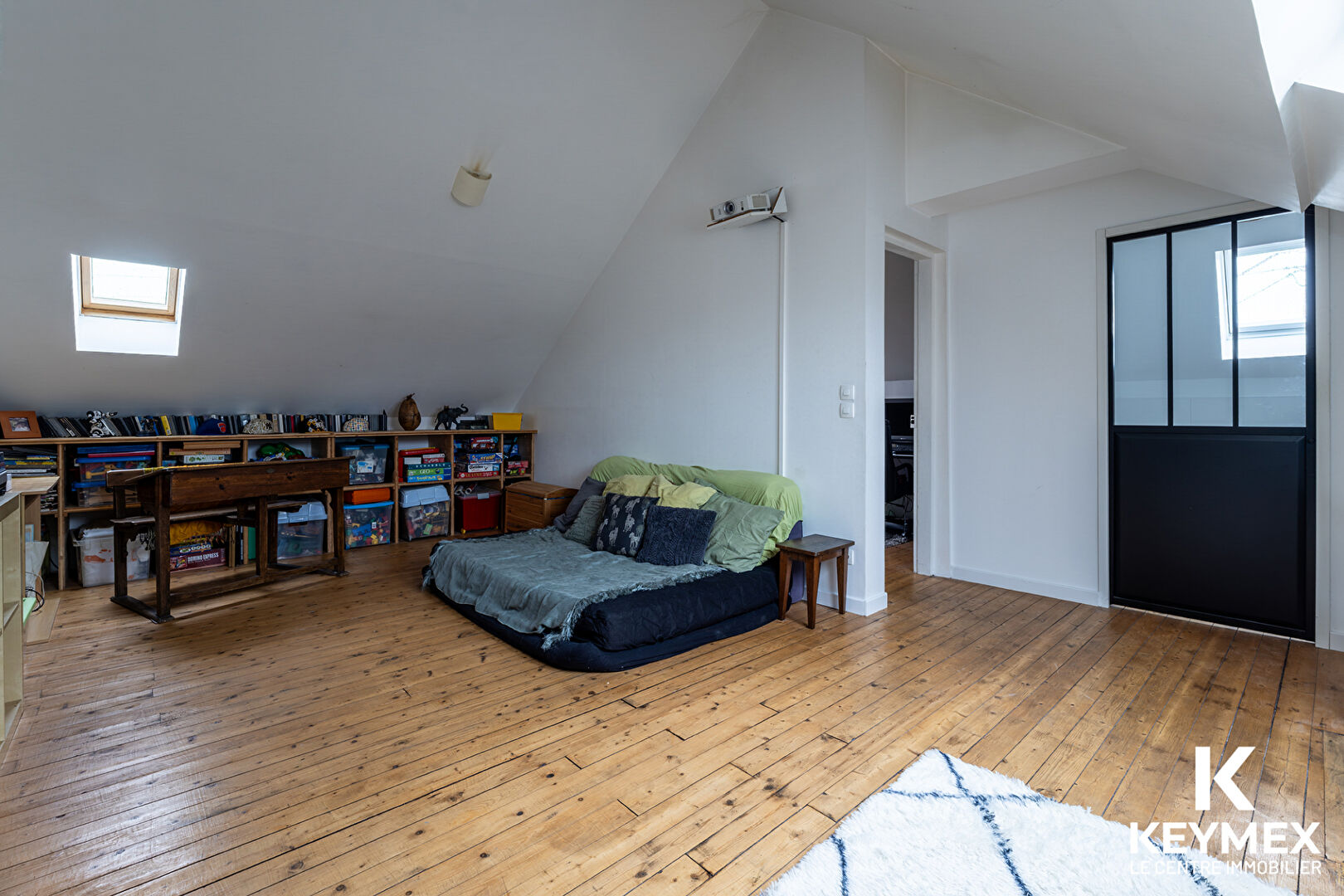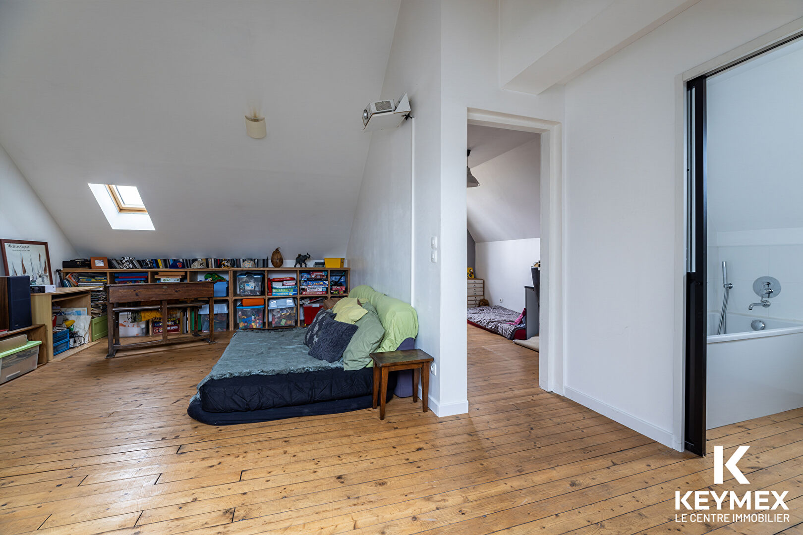 Le deuxième étage offre un fort potentiel d'aménagement : aujourd'hui composé d'une salle de jeux, d'une chambre et d'une salle de bain avec WC, cet espace pourrait facilement être transformé en grande suite parentale ou en deux chambres supplémentaires selon vos besoins.