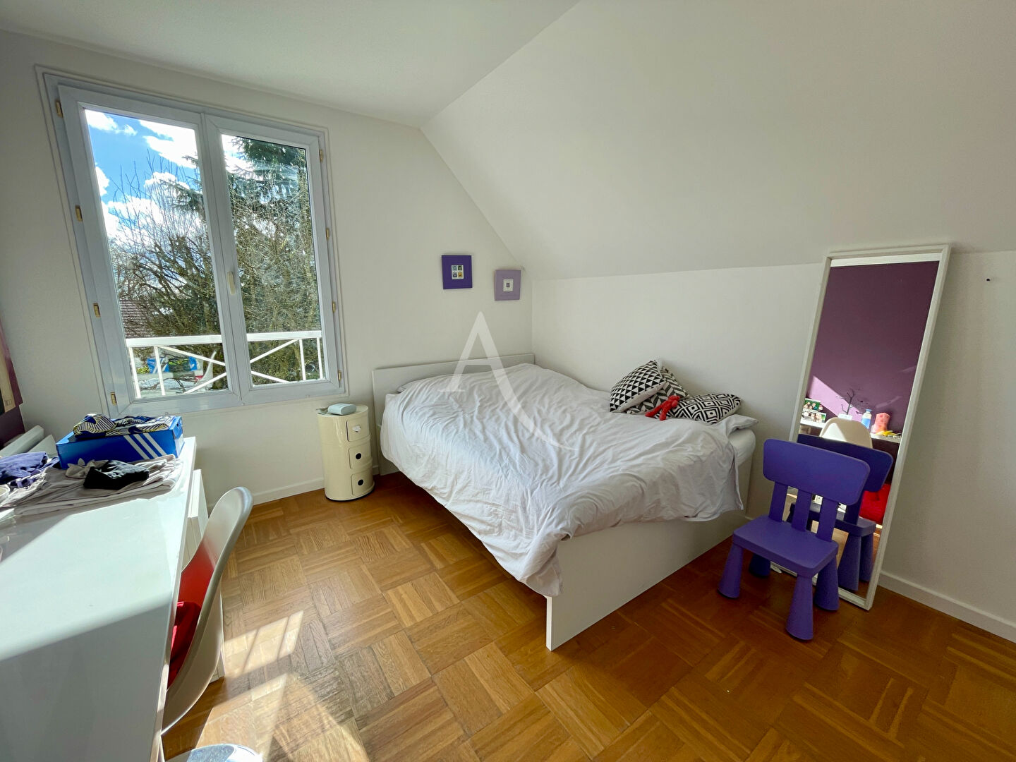 À l'étage, une mezzanine ouverte dessert trois chambres, une salle de bains, ainsi qu'une suite parentale avec dressing et salle d'eau, offrant un espace nuit confortable et bien organisé pour toute la famille.