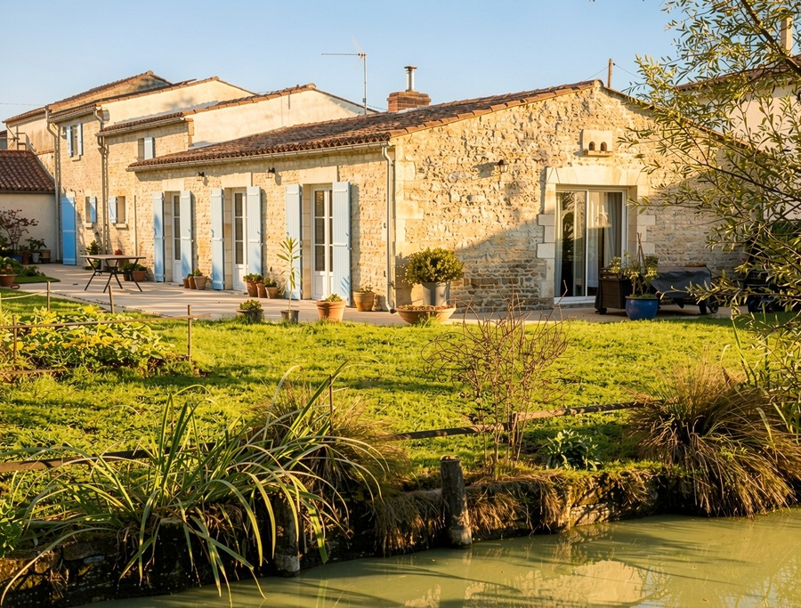 Catherine BRUGUIER vous propose au coeur d'un environnement paisible et verdoyant, cette charentaise de 205 m² déploie tout le charme de l'architecture locale allié à un confort contemporain haut de gamme. Nichée sur un terrain de 1 300 m², en bord de conche, elle offre un cadre de vie rare, intime et harmonieux.