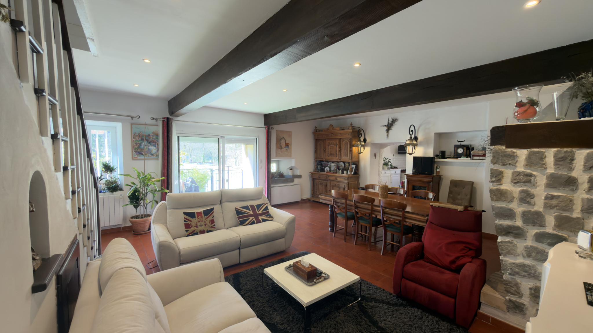 Au rez-de-chaussée, les pièces de vie accueillantes s'ouvrent sur une première terrasse,
