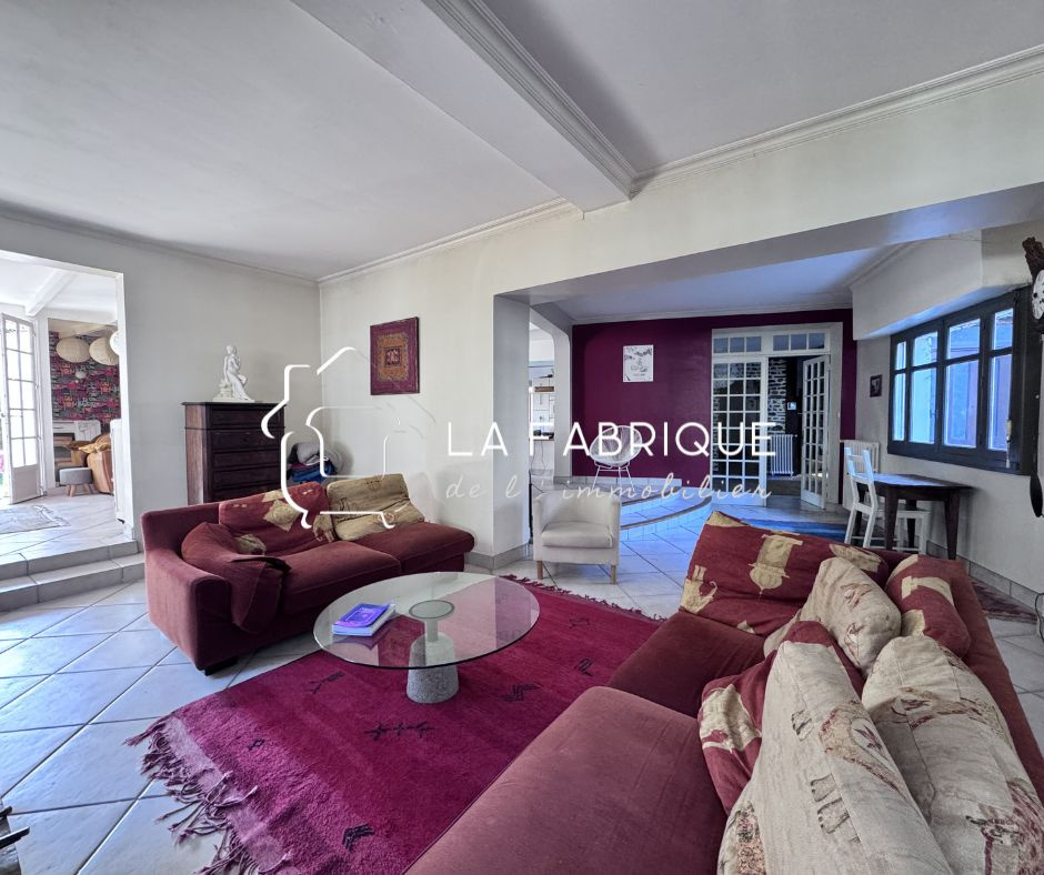 Dès l'entrée, l'escalier ancien capte le regard et donne le ton. La maison s'organise autour de beaux espaces de vie qui se succèdent avec naturel. Le salon, la salle à manger et le séjour composent un ensemble vaste et chaleureux où l'on imagine facilement les moments de partage, les grandes tablées et la vie de famille qui anime les lieux.