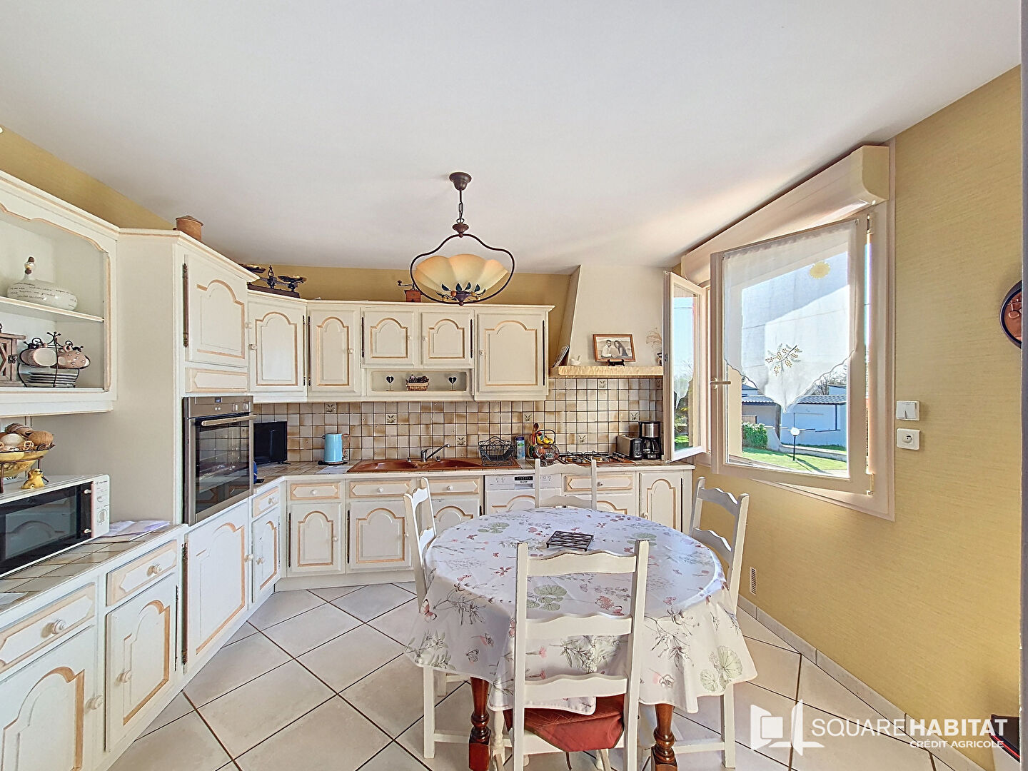 D'une surface habitable d'environ 128 m², elle se compose au rez-de-chaussée de : une cuisine aménagée et équipée, un salon séjour lumineux avec cheminée, deux chambres, une salle de bains.