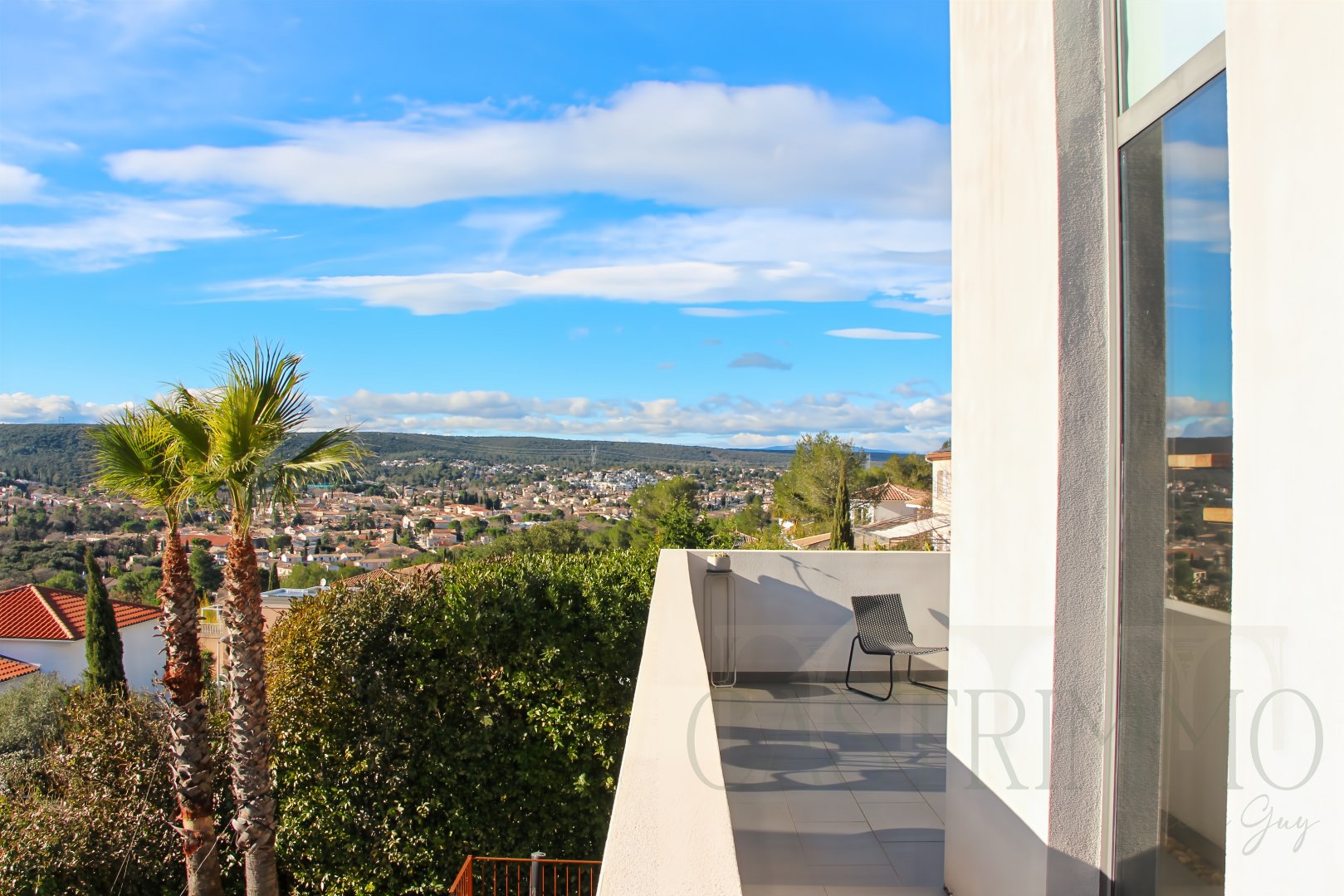 Implantée sur près de 1 400 m² de jardins paysagers soigneusement dessinés, elle offre une perspective panoramique magistrale à plus de 180° sur la ville tout en étant à proximité du parcours de golf.