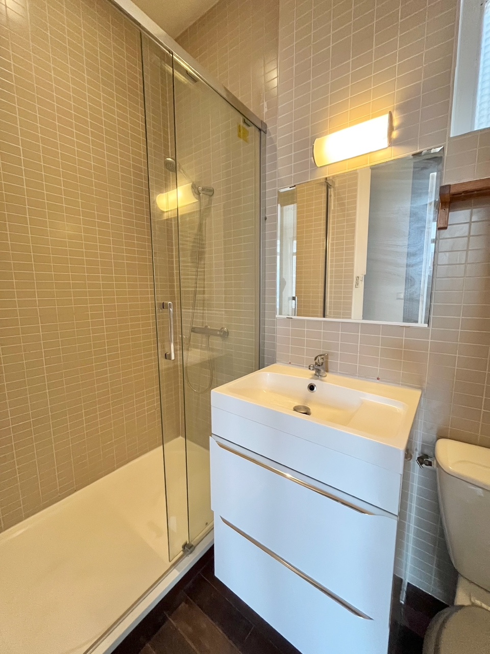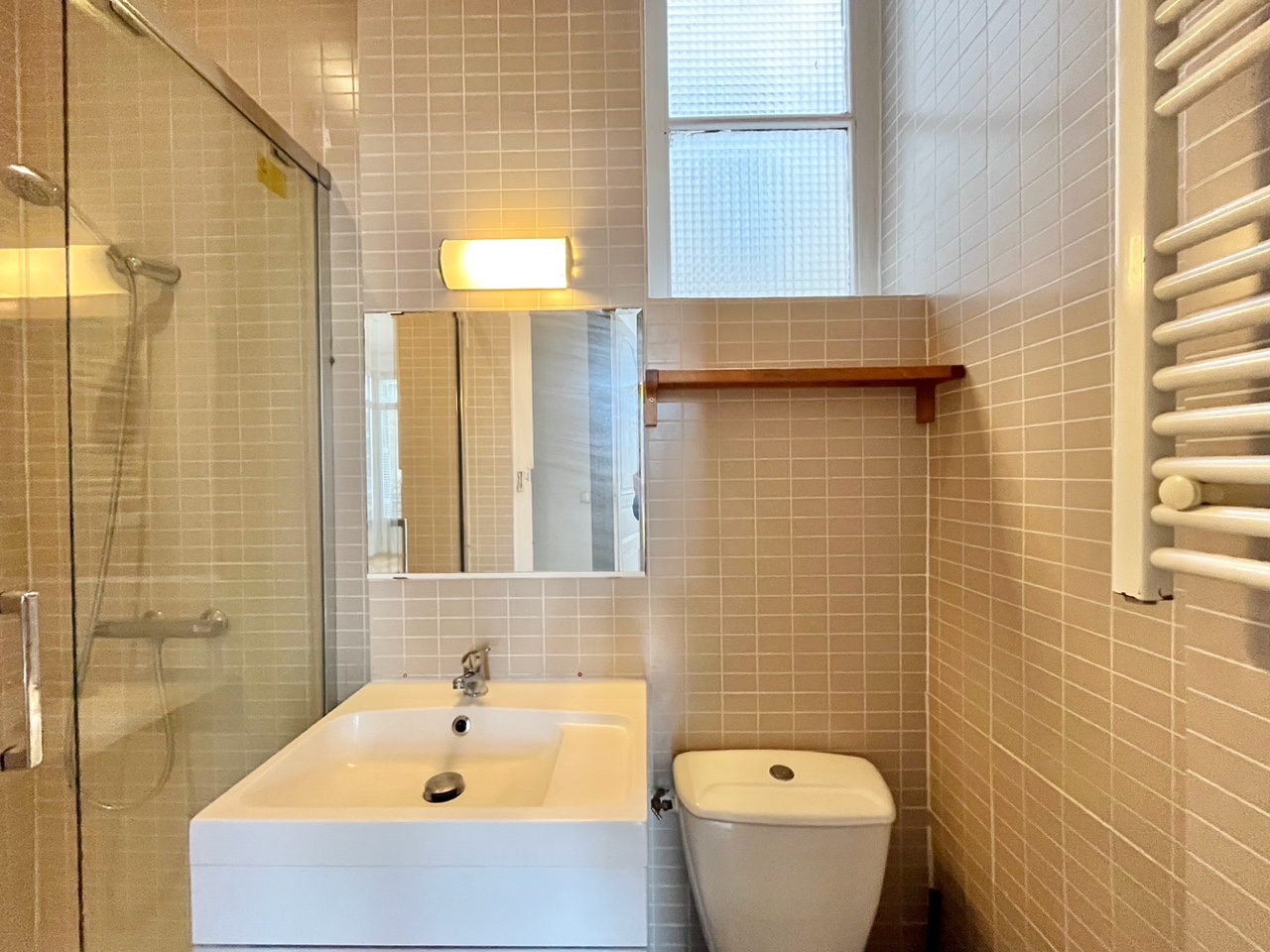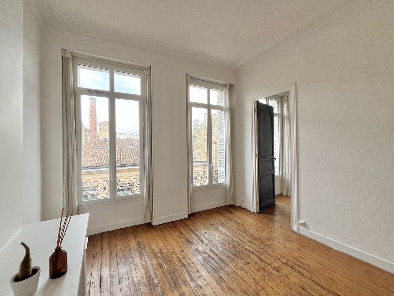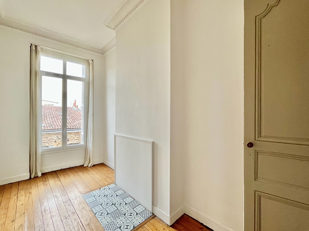 Bordeaux, à proximité de la Place de la Victoire, Tramway B et Bus, appartement T2 de 39m² au 3° étage d'un immeuble ancien en copropriété, composé d'une entrée, d'une salle d'eau avec wc, une chambre, un séjour, une cuisine équipée. Libre.