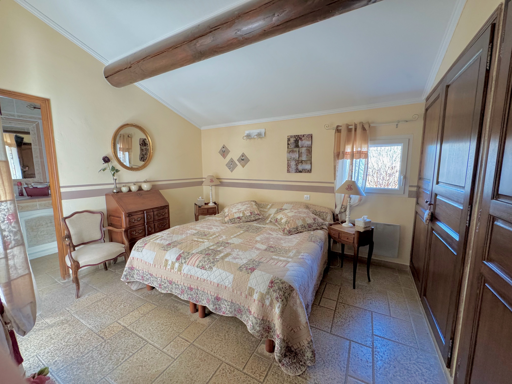 À vendre, dans un charmant village provençal situé au pied des Dentelles de Montmirail, villa individuelle construite en 2009 offrant environ 120 m2 habitables sur un terrain de 605 m2. La maison propose une distribution fonctionnelle et lumineuse avec au rez-de-chaussée une entrée de 5,1 m2, un vaste séjour climatisé de 42 m2 ouvrant sur une agréable terrasse de 16,5 m2, une cuisine indépendante de 14,5 m2, une arrière-cuisine / buanderie / cellier de 8,2 m2, une chambre de 12,2 m2 avec penderie, une salle d'eau avec WC de 4,5 m2, un WC indépendant de 2 m2 ainsi qu'un dégagement de 7 m2 aménagé en espace bureau donnant également accès à la terrasse. À l'étage, la maison dispose d'une mezzanine de 10 m2 desservant une pièce pouvant faire office de chambre ou de bureau avec penderie, une salle d'eau avec WC et une terrasse privative de 10 m2. Un grand garage de 30 m2 complète l'ensemble. Maison construite en 2009, équipée d'un système de chauffage individuel électrique avec climatisation dans le séjour, offrant un cadre de vie agréable et fonctionnel dans un environnement recherché. Contact : 04 90 46 98 46 DEMEURES EN PROVENCE Depuis 1988 VENTE - LOCATION - GESTION ET GARANTIE DES LOYERS