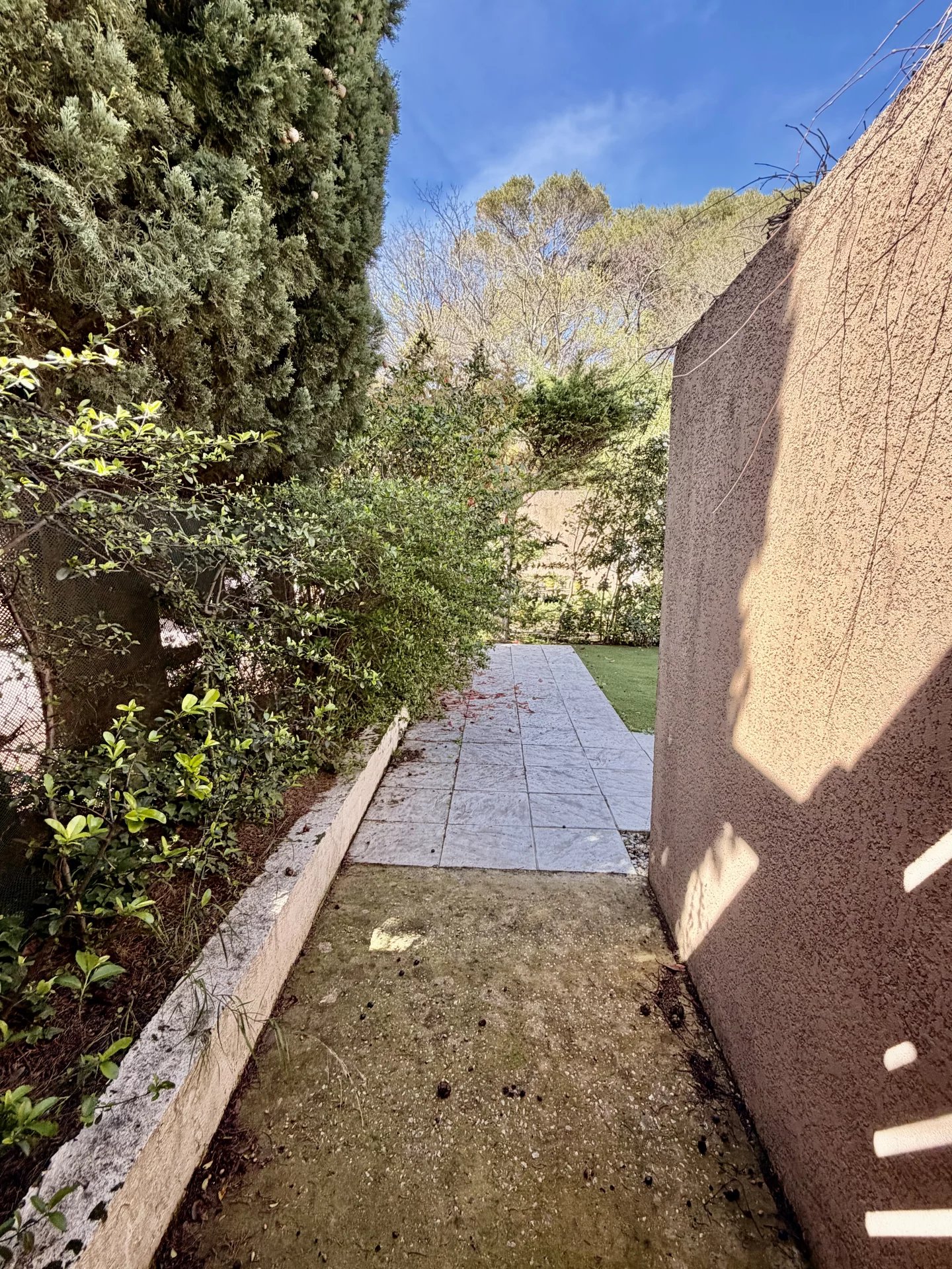 À l’extérieur, le jardinet permet de profiter des beaux jours en toute tranquillité.