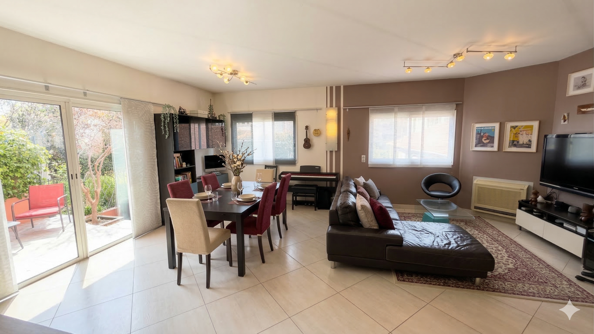 L'extérieur se distingue par une magnifique terrasse de 48,92 m2 agrémentée d'un jacuzzi et d'un système d'arrosage automatique, complétée par une bande de terrain privative, un garage et une cave.