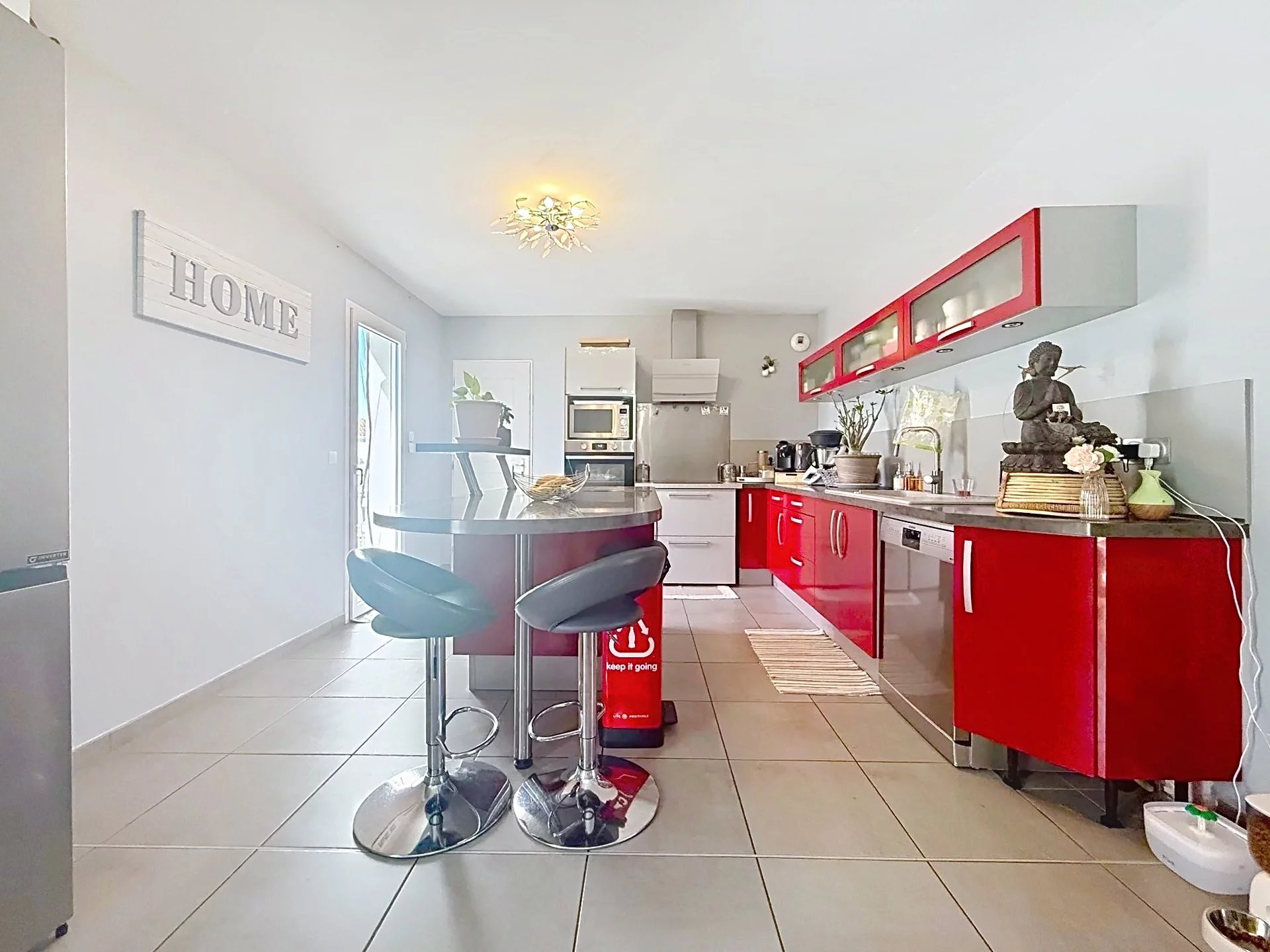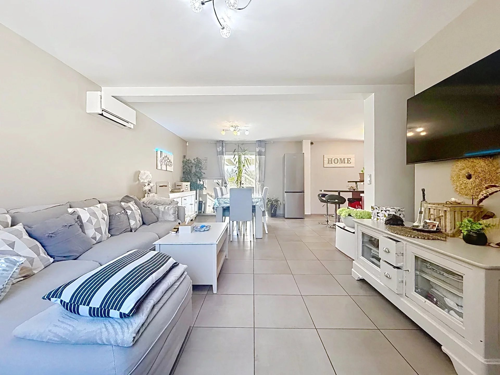 L’Espace de vie : Un grand salon-séjour chaleureux qui communique avec une cuisine équipée et une buanderie attenante.