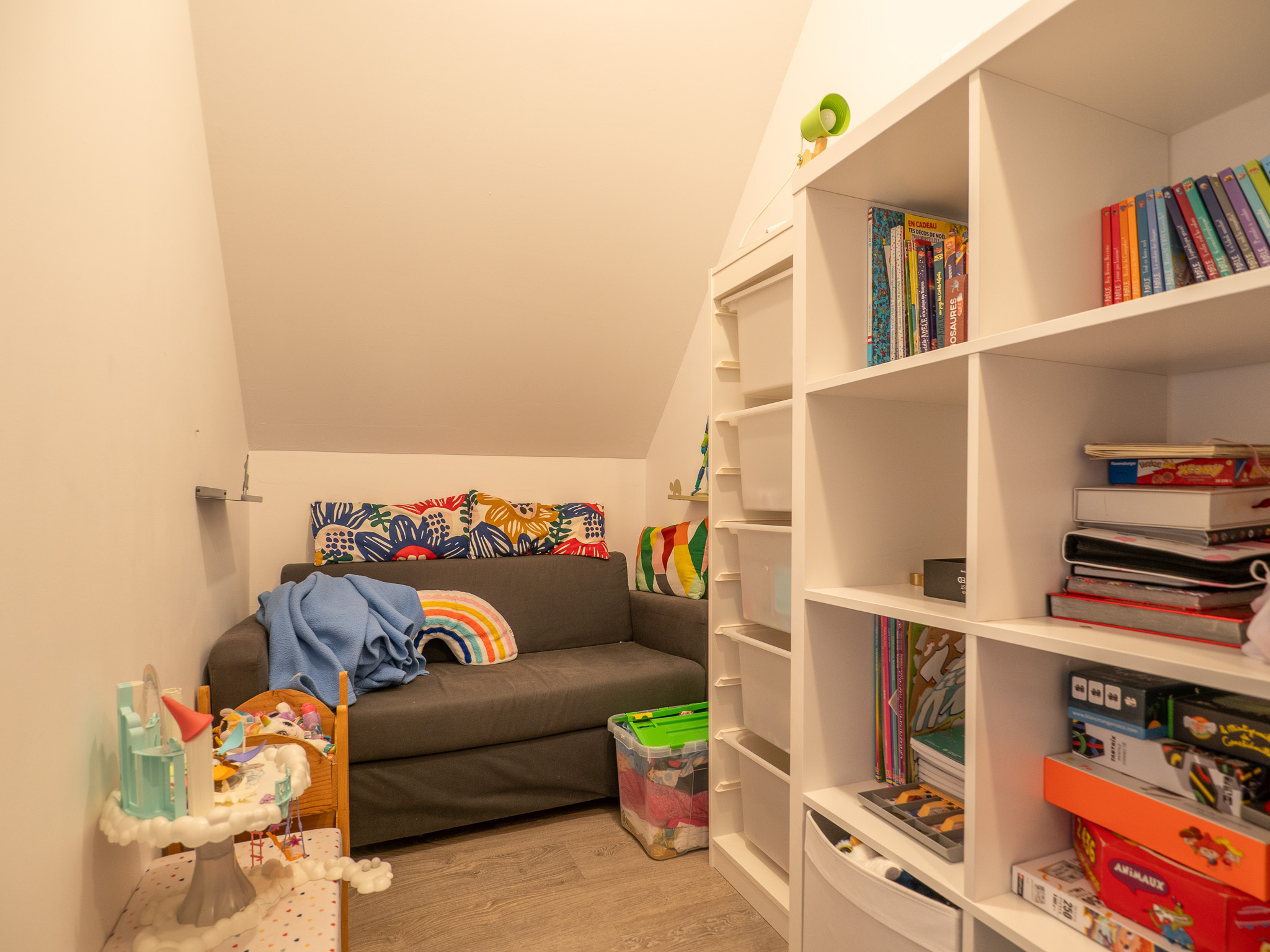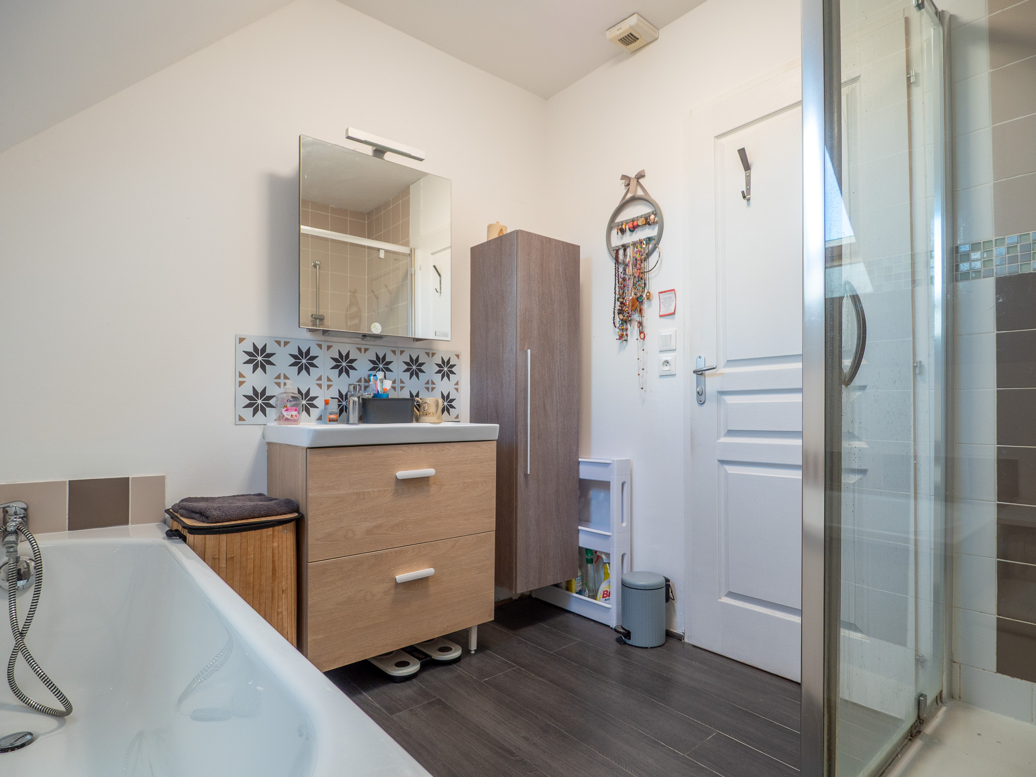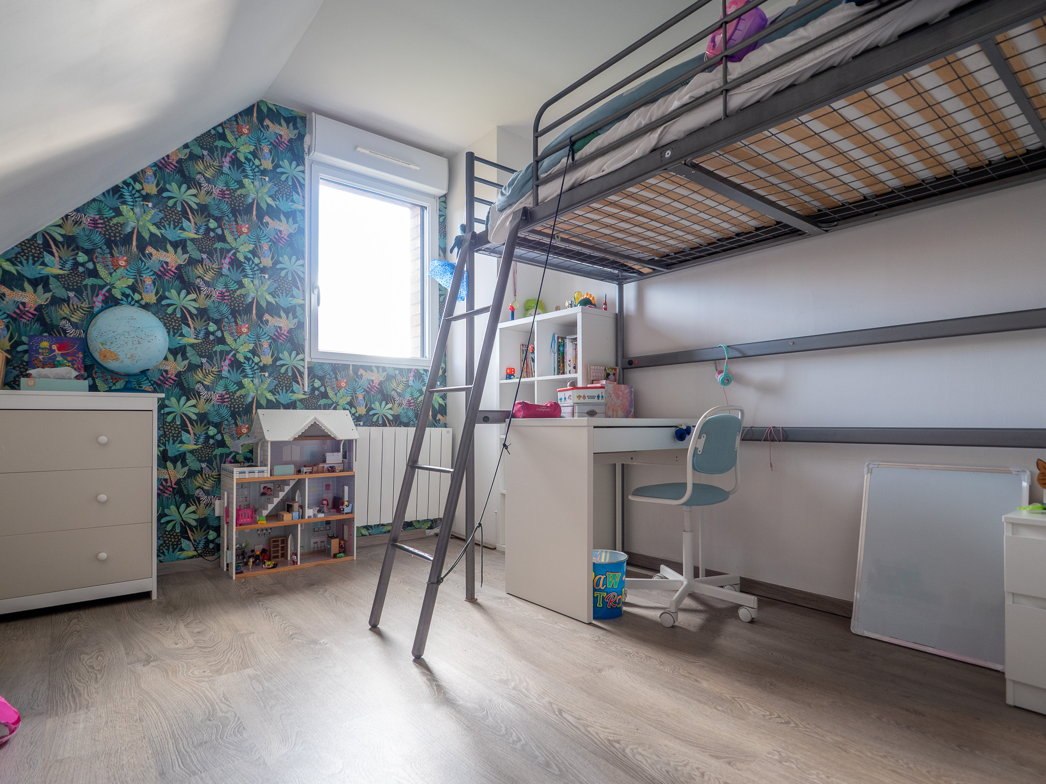 L'étage se compose de 3 chambres, d'un dressing, d'un espace bureau et d'une salle de bain complète, parfaitement pensée pour la vie quotidienne.