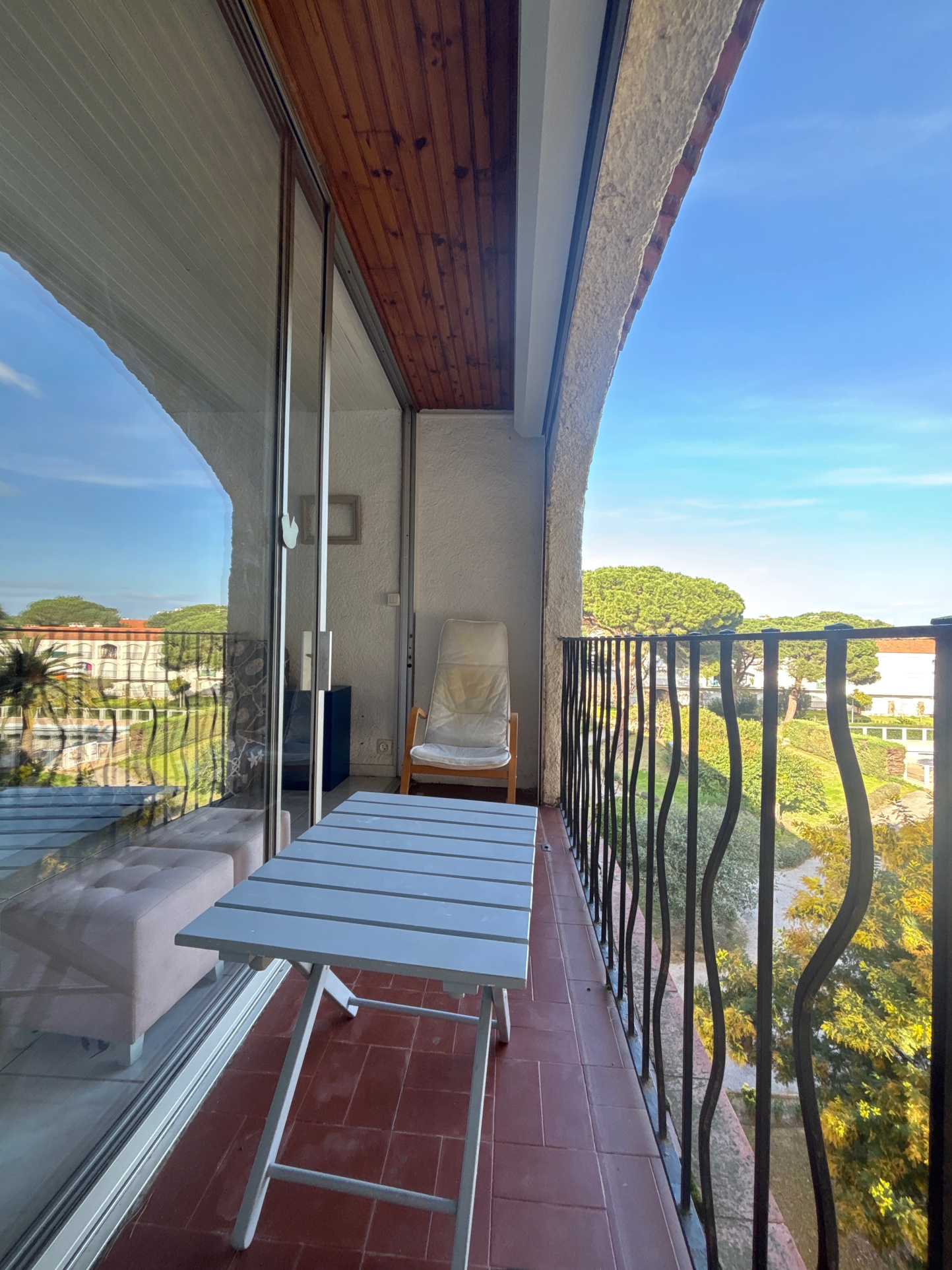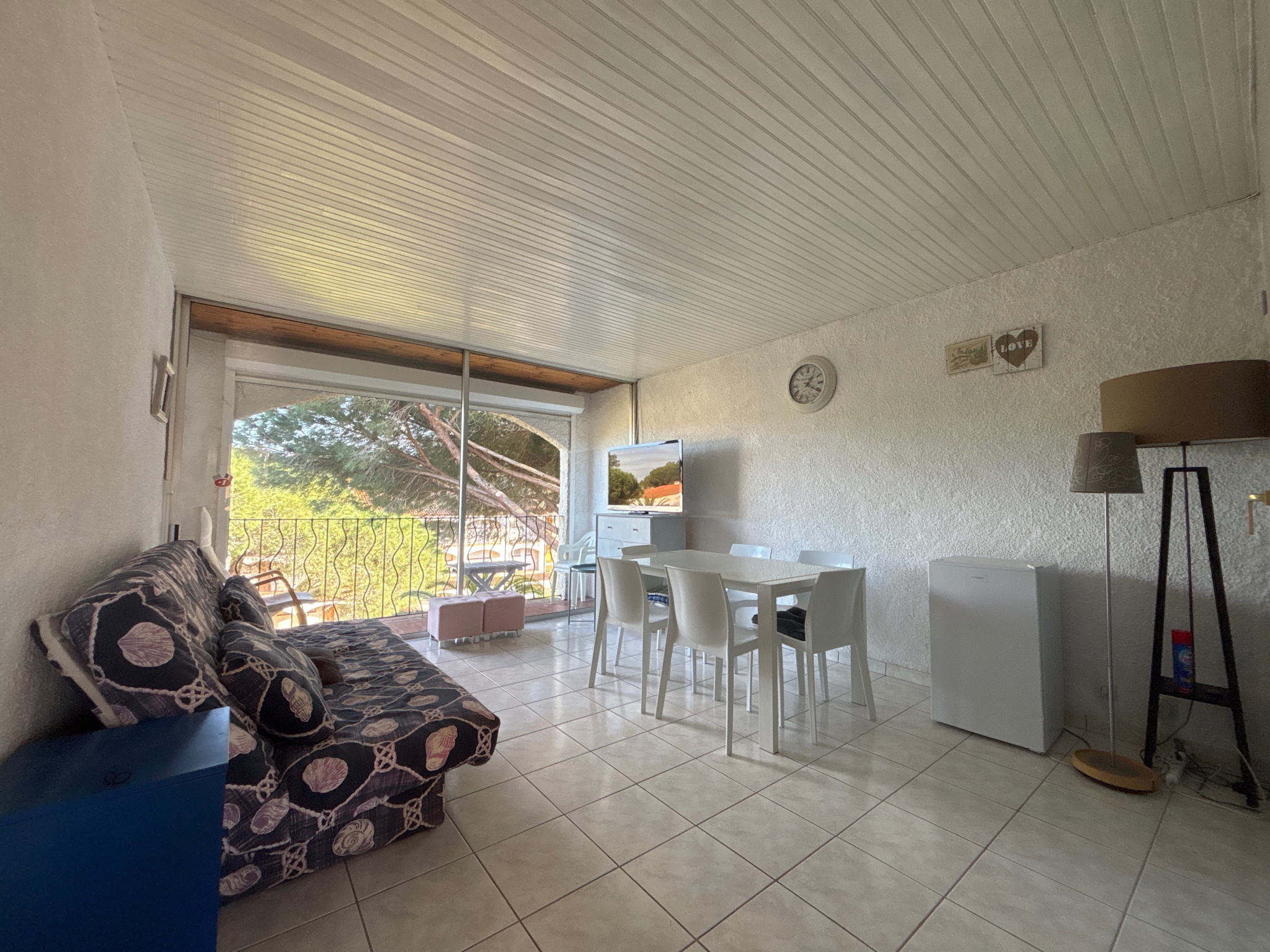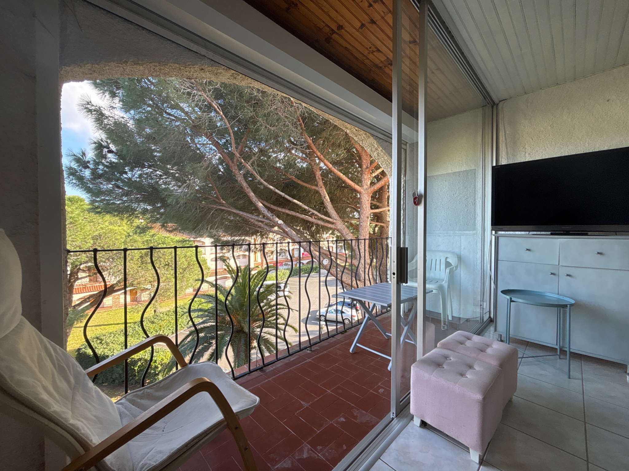 L'appartement bénéficie d'un environnement calme et verdoyant, avec une vue totalement dégagée sur la pinède, à seulement 300 mètres de la plage et à proximité immédiate des pistes cyclables et des commodités.