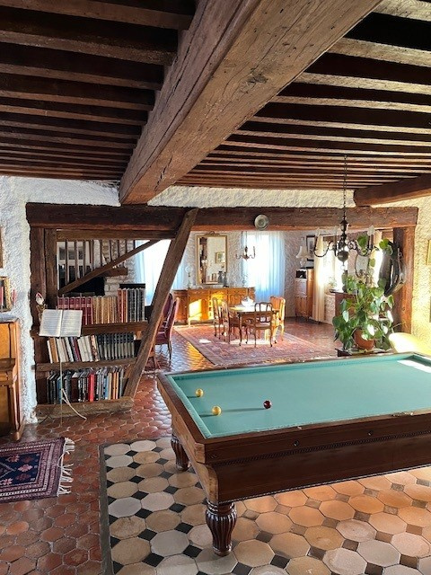 L'entrée s'effectue directement dans un grand espace avec billard, qui dessert :