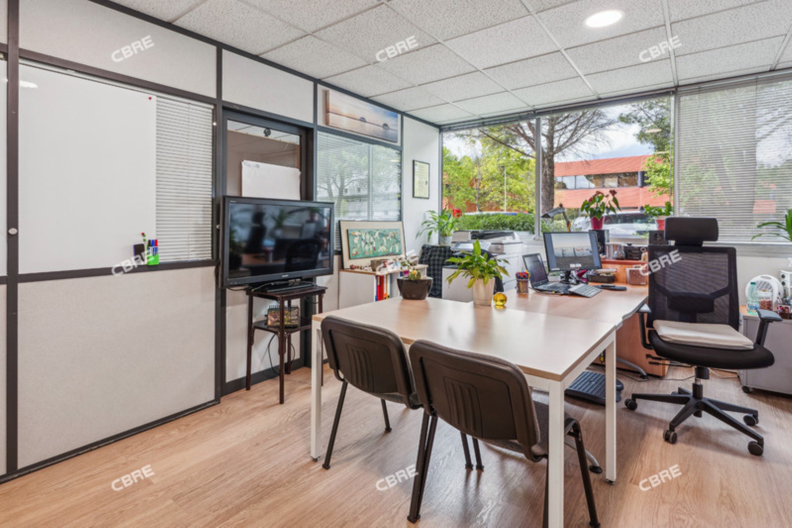 EXCLUSIVITE - SECTEUR MERIGNAC PARC INNOLIN - CBRE vous propose à LA VENTE des bureaux d'une surface de 199 m² surface carrez, au RDC d'un immeuble de bureaux au coeur du parc tertiaire Innolin de Mérignac. Bureaux en bon état général, équipés (climatisation réversible, goulottes périphériques, baie de brassage) et cloisonnés (cloisons amovibles). Ce plateau bénéficie d'une salle de réunion, d'un open space, de deux bureaux cloisonnés et d'un espace cuisine.