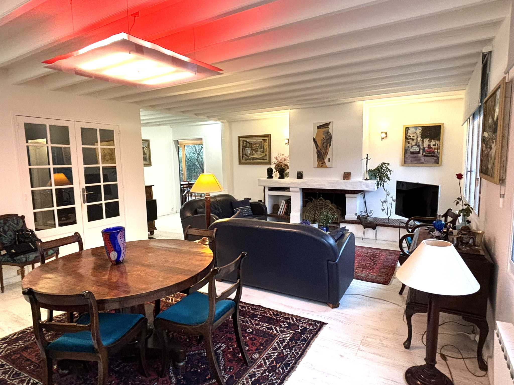 Construite dans les années 80 et implantée sur une parcelle de 553 m2, cette maison en très bon état général séduit par ses volumes généreux et sa luminosité omniprésente. Dès l'entrée, on découvre un superbe séjour de plus de 40 m2, baigné de lumière, offrant un espace de réception confortable et chaleureux, parfaitement adapté aux moments de convivialité comme à la vie quotidienne. Dans son prolongement, une salle à manger indépendante apporte un véritable confort d'usage et s'ouvre largement sur le jardin grâce à une grande baie vitrée, créant une belle continuité entre intérieur et extérieur et une agréable sensation d'espace.