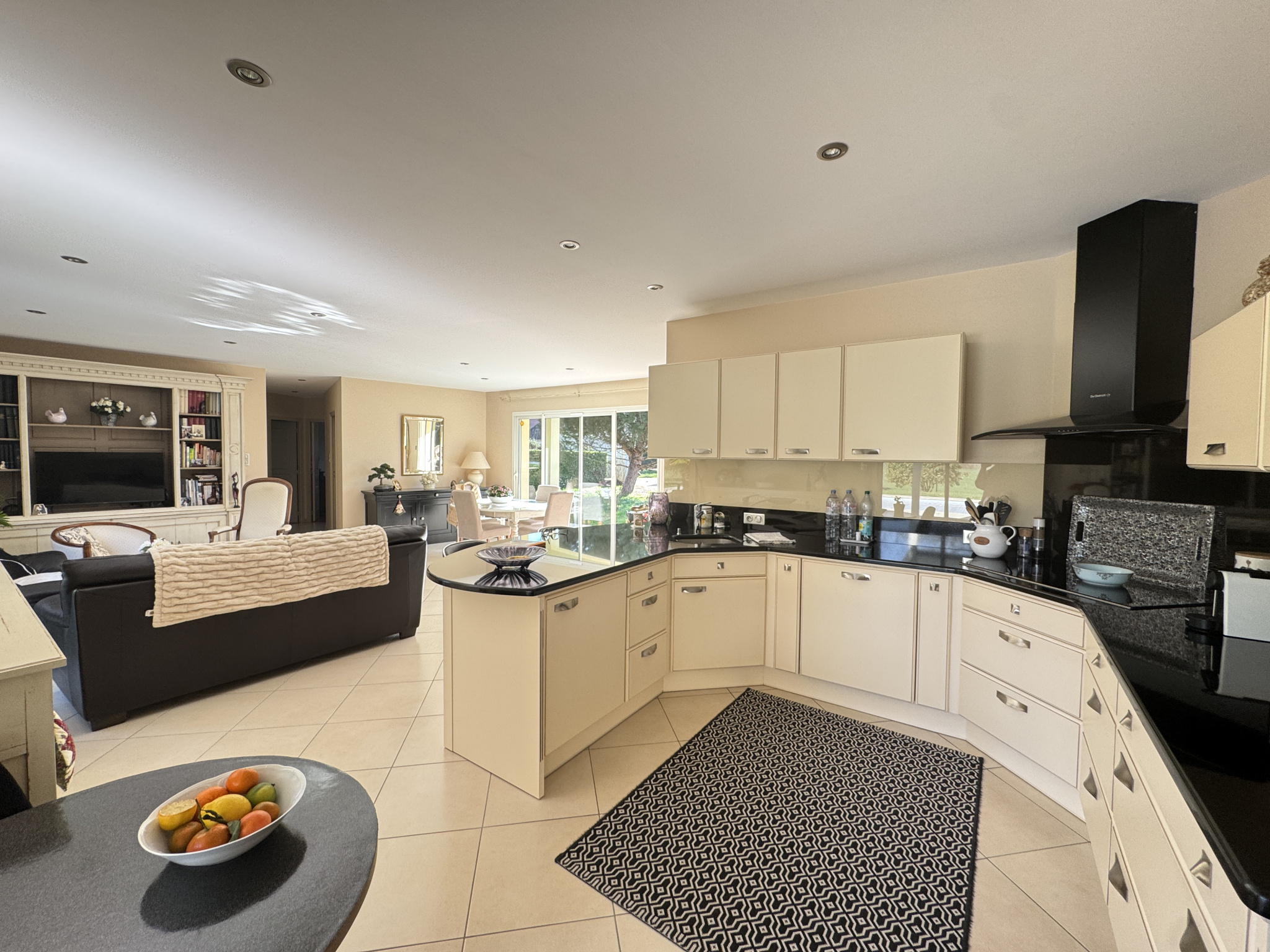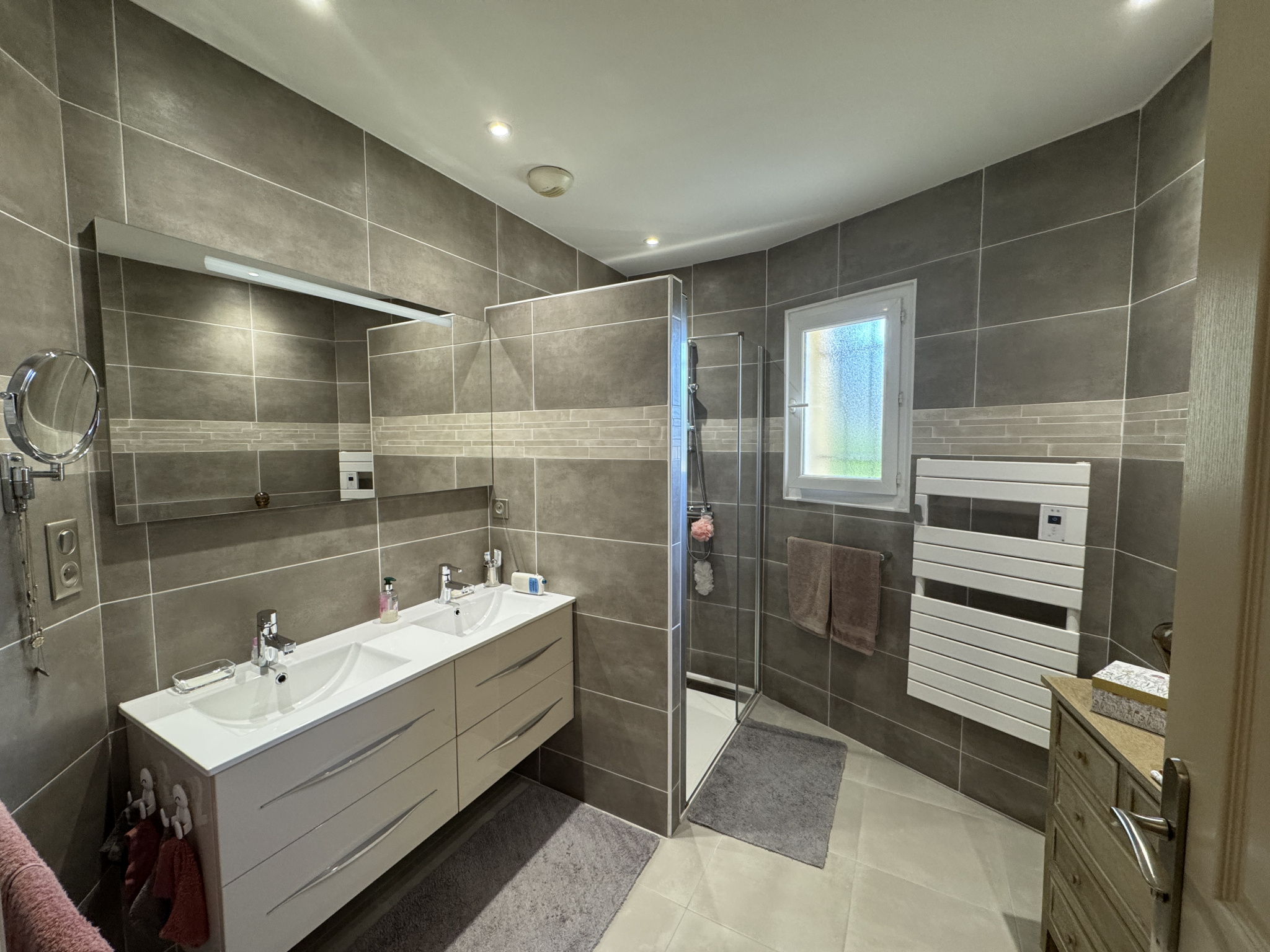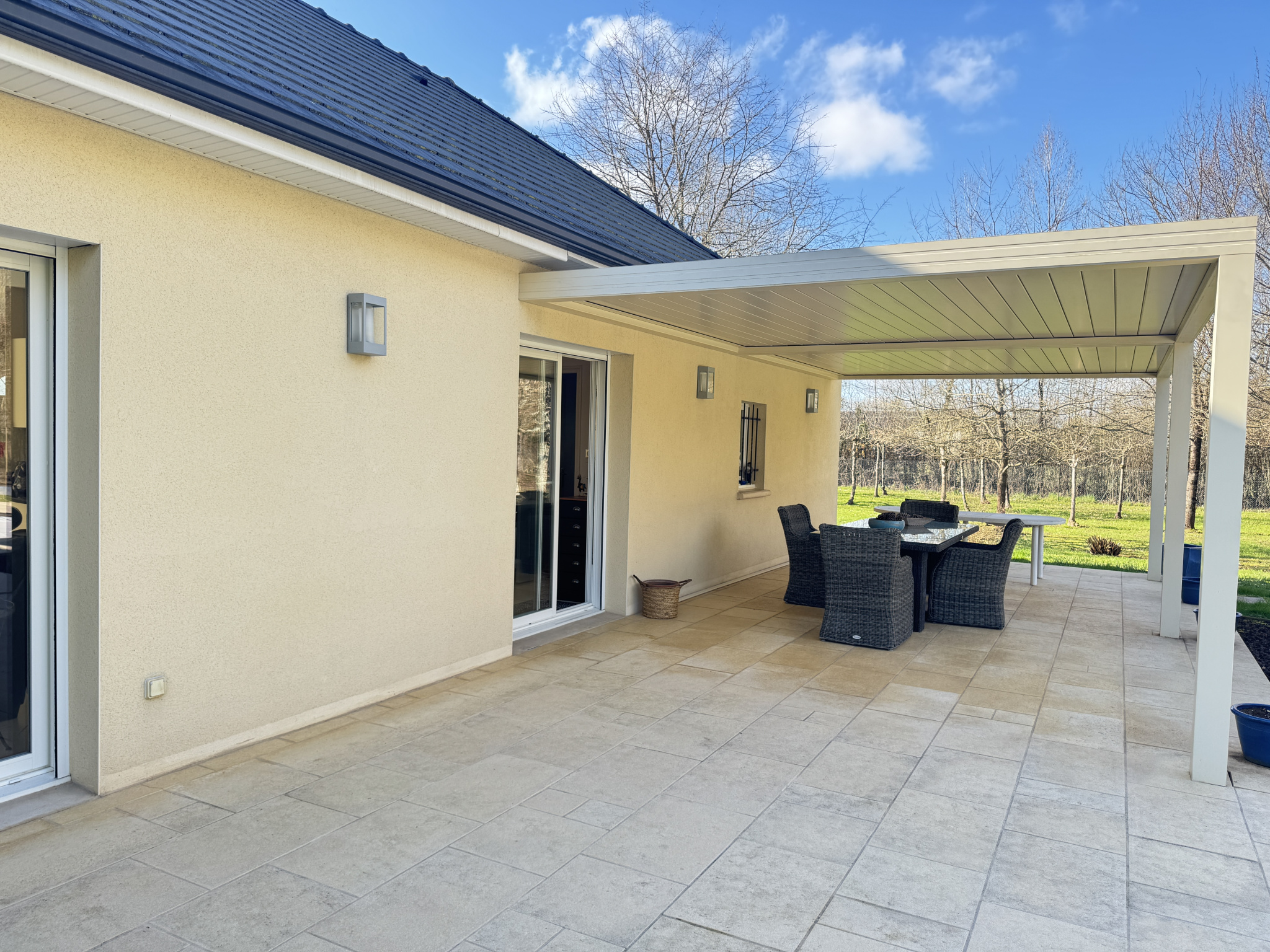 A proximité immédiate des commerces et de l'école élémentaire, cette maison construite en 2009 offre 110m2 habitables de plain pied. Luminosité et prestations en sont les atouts majeurs. Vous pourrez profiter d'une très belle pièce de vie ouverte d'environ 50m2 avec une cuisine entièrement équipée. Trois chambres, salle d'eau, deux WC et cellier. Garage attenant dans lequel vous pourrez abriter deux voitures. Le parc, parfaitement entretenu, vous permettra de profiter d'une belle terrasse avec accès direct sur la piscine et d'une partie arborée. Propriété entièrement cloturée.