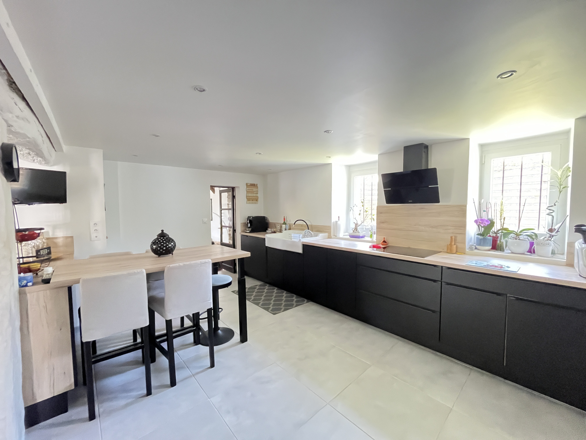 - La maison principale, d'environ 185 m2, allie charme d'antan avec les pierres et les poutres typiques, et confort moderne. Elle offre de grands espaces de vie, une cuisine neuve équipée, un salon chaleureux avec cheminée, un bureau, deux chambres, et une salle d'eau en rdc. À l'étage, trois chambres, une salle d'eau avec WC,