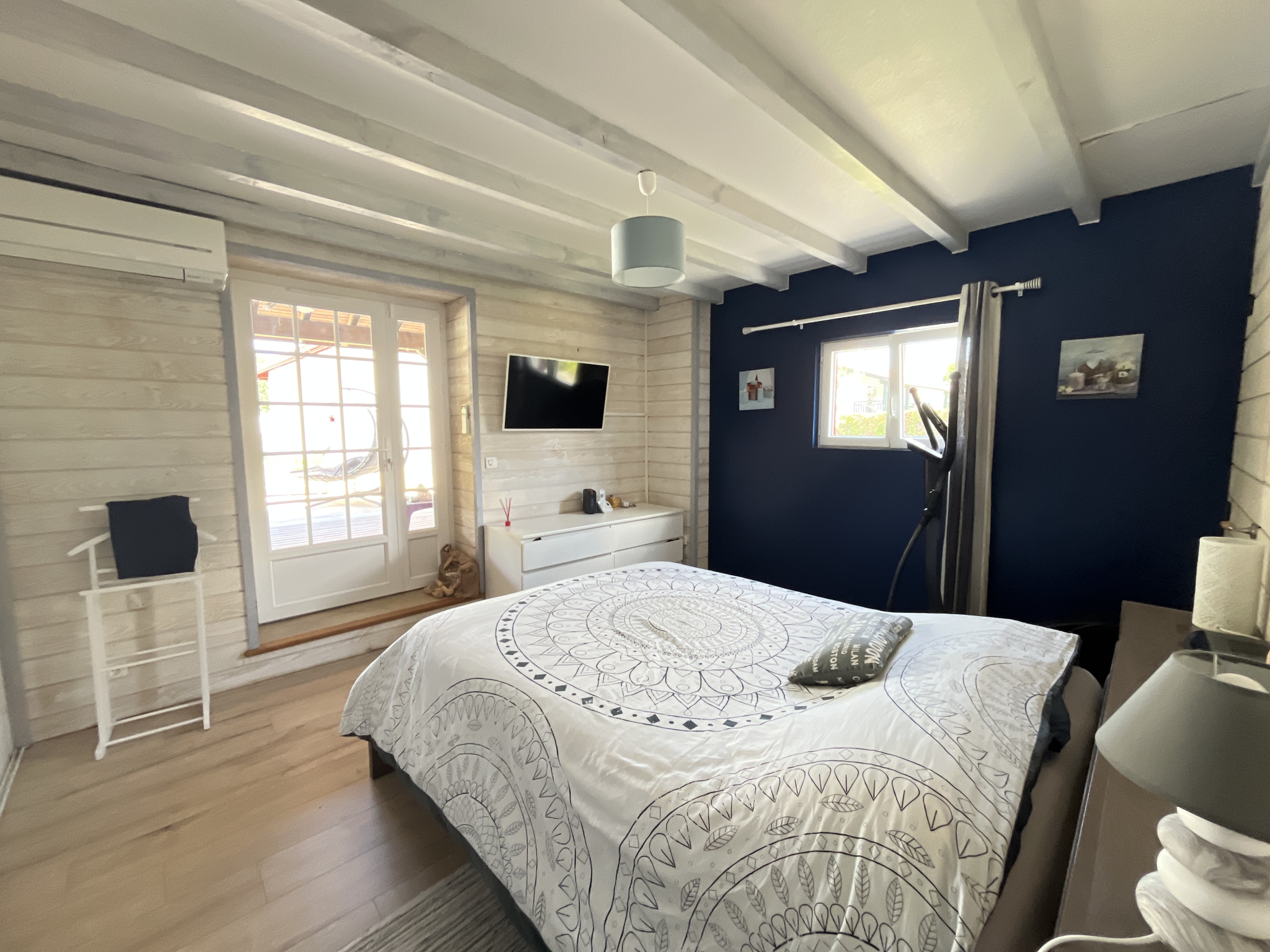 - La dépendance, d'environ 76 m2, est enregistrée gîte de France. et propose un logement contemporain avec un grand espace de vie de 39 m2, une chambre en rdc, une mezzanine avec salle d'eau et espace nuit, et bénéficie également d'une climatisation réversible et d'un système de pompe à chaleur, tout comme la maison principale.