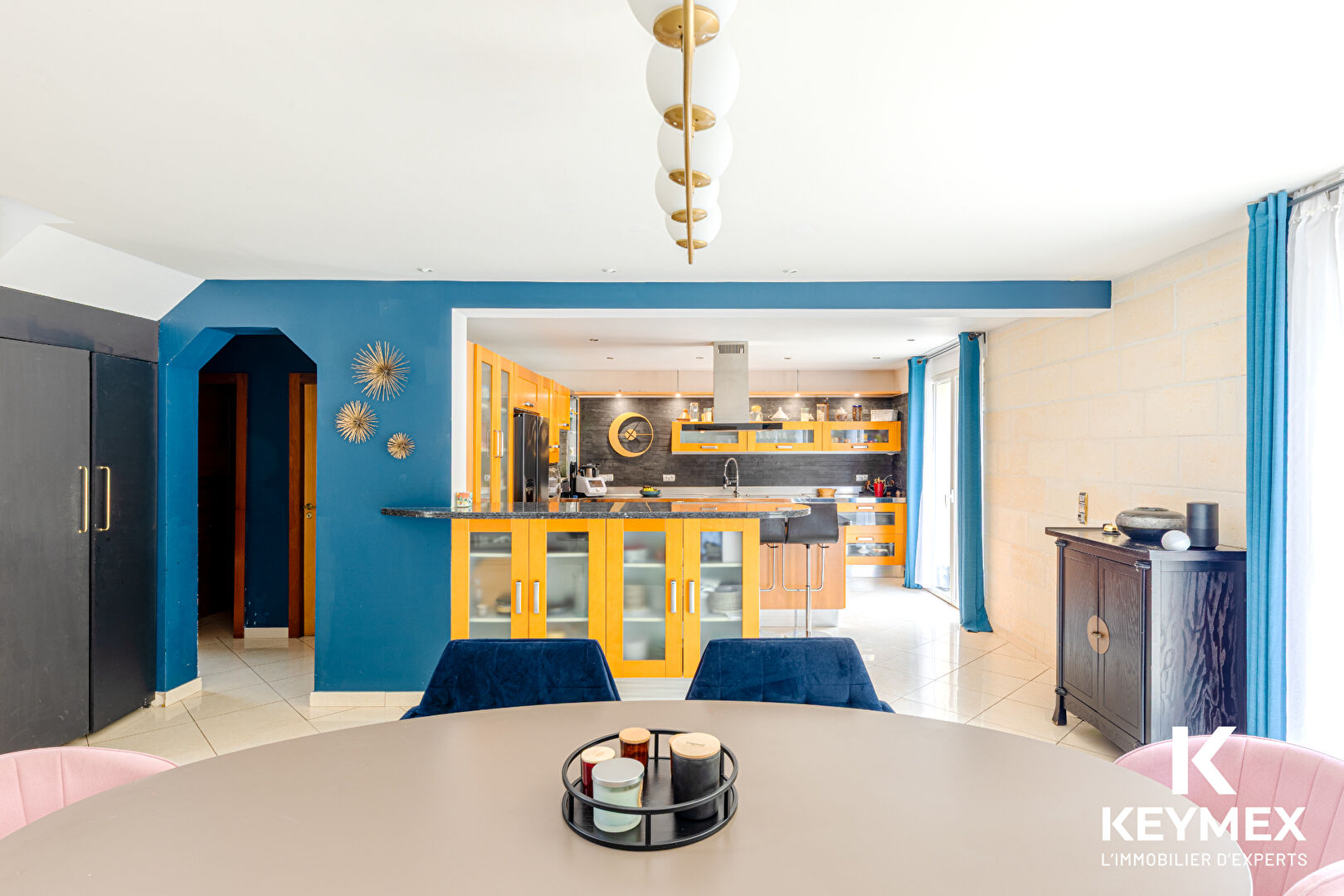 Elle propose un superbe espace de vie de plus de 100 m² avec plafond cathédrale et une cuisine aménagée et équipée ouverte, idéal pour partager des moments conviviaux.