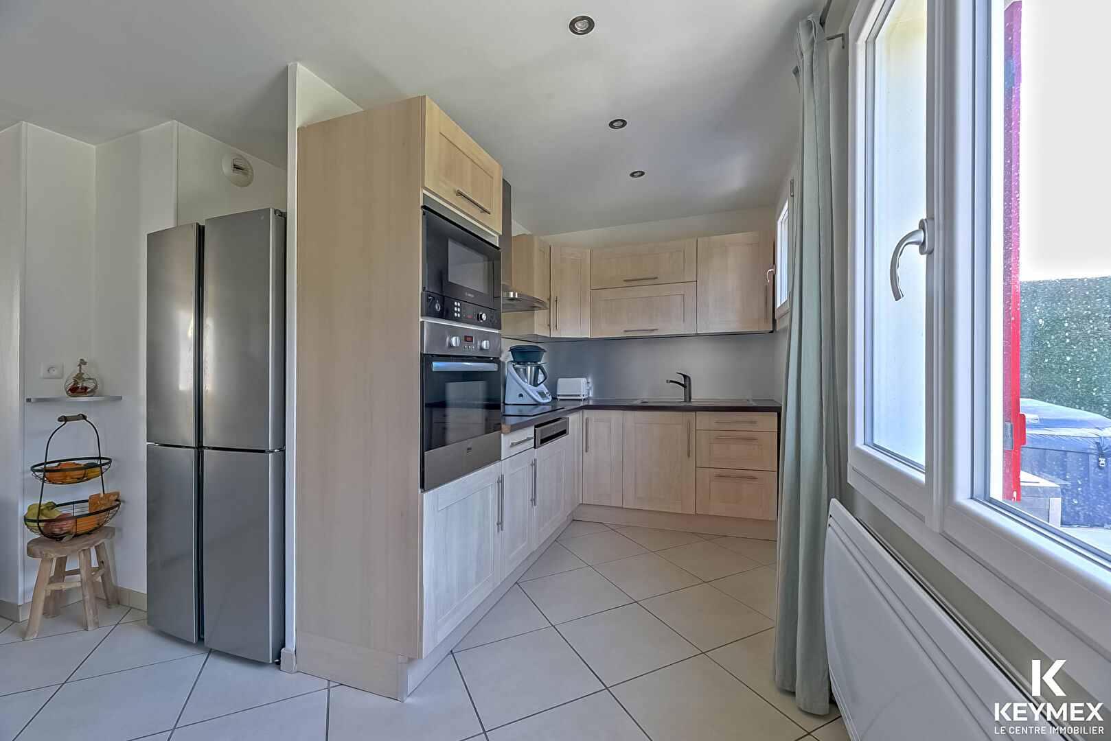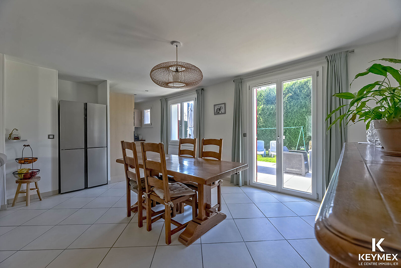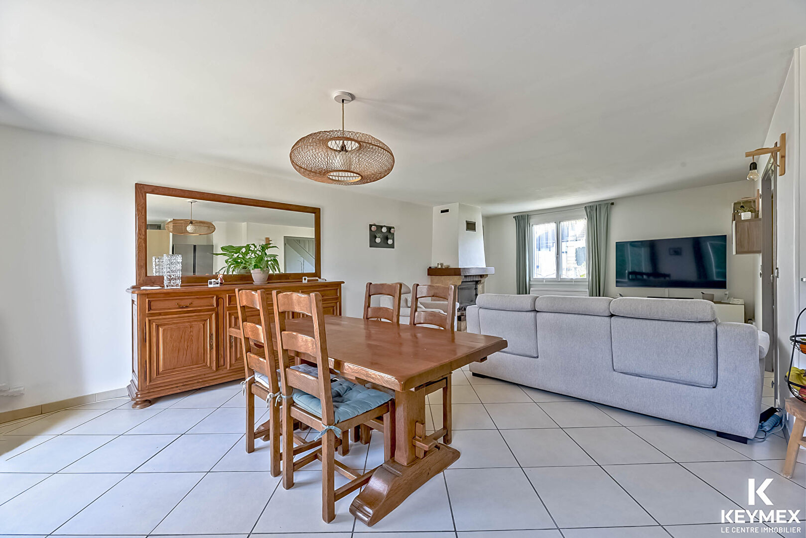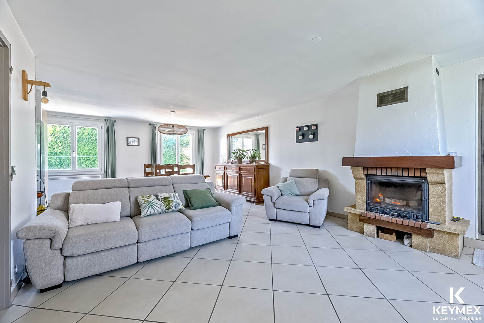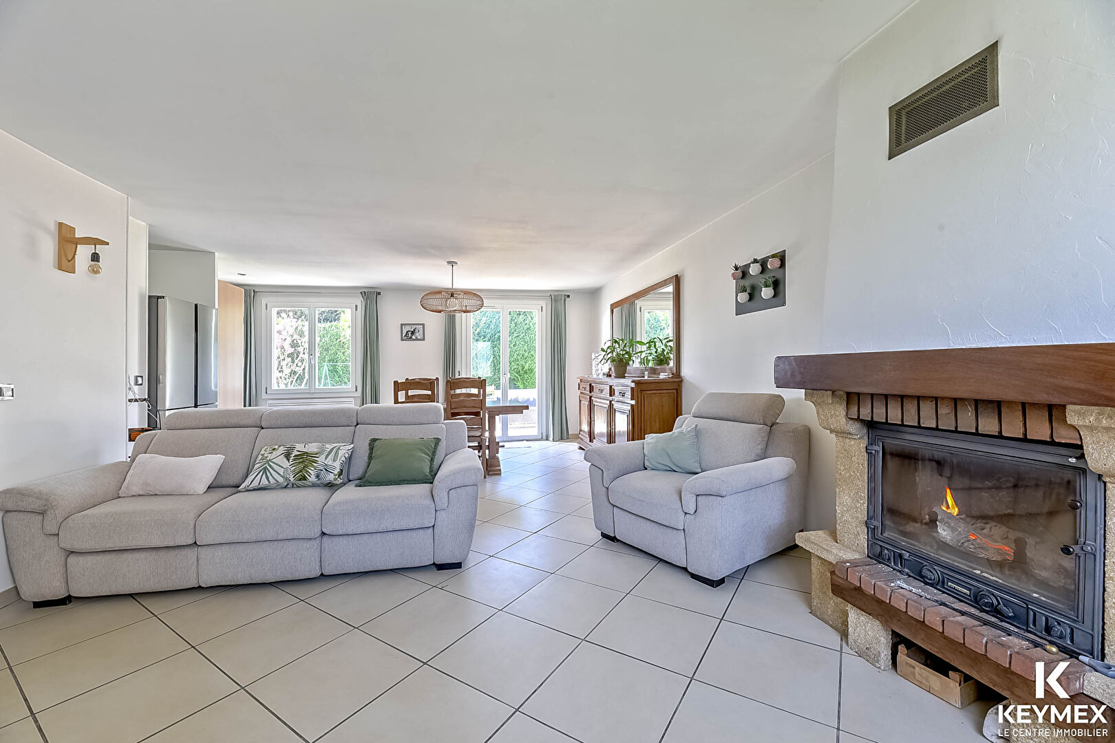 Édifiée sur une parcelle de 486 m² sans vis-à-vis, elle offre dès l'entrée une atmosphère chaleureuse et accueillante. Le hall s'ouvre sur un bel espace de vie de 35 m², composé d'un séjour double lumineux et d'une cuisine ouverte aménagée et équipée, idéal pour partager des moments conviviaux. Une cheminée avec répartiteur de chaleur vient compléter cet espace, apportant confort et caractère.