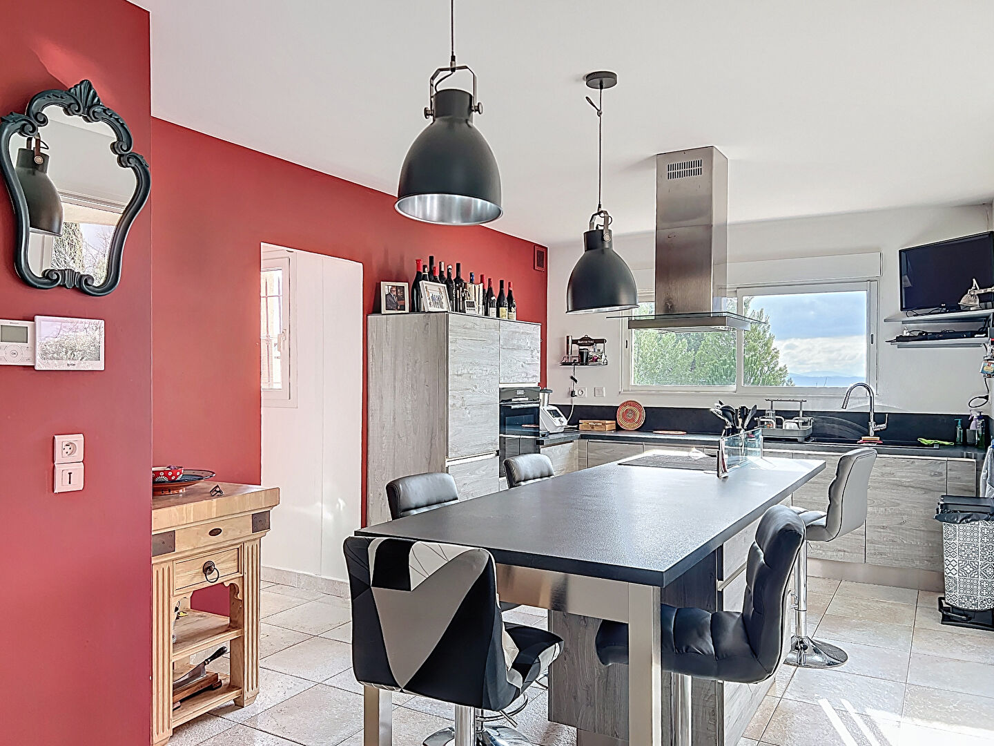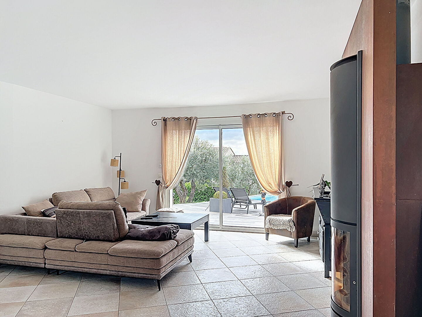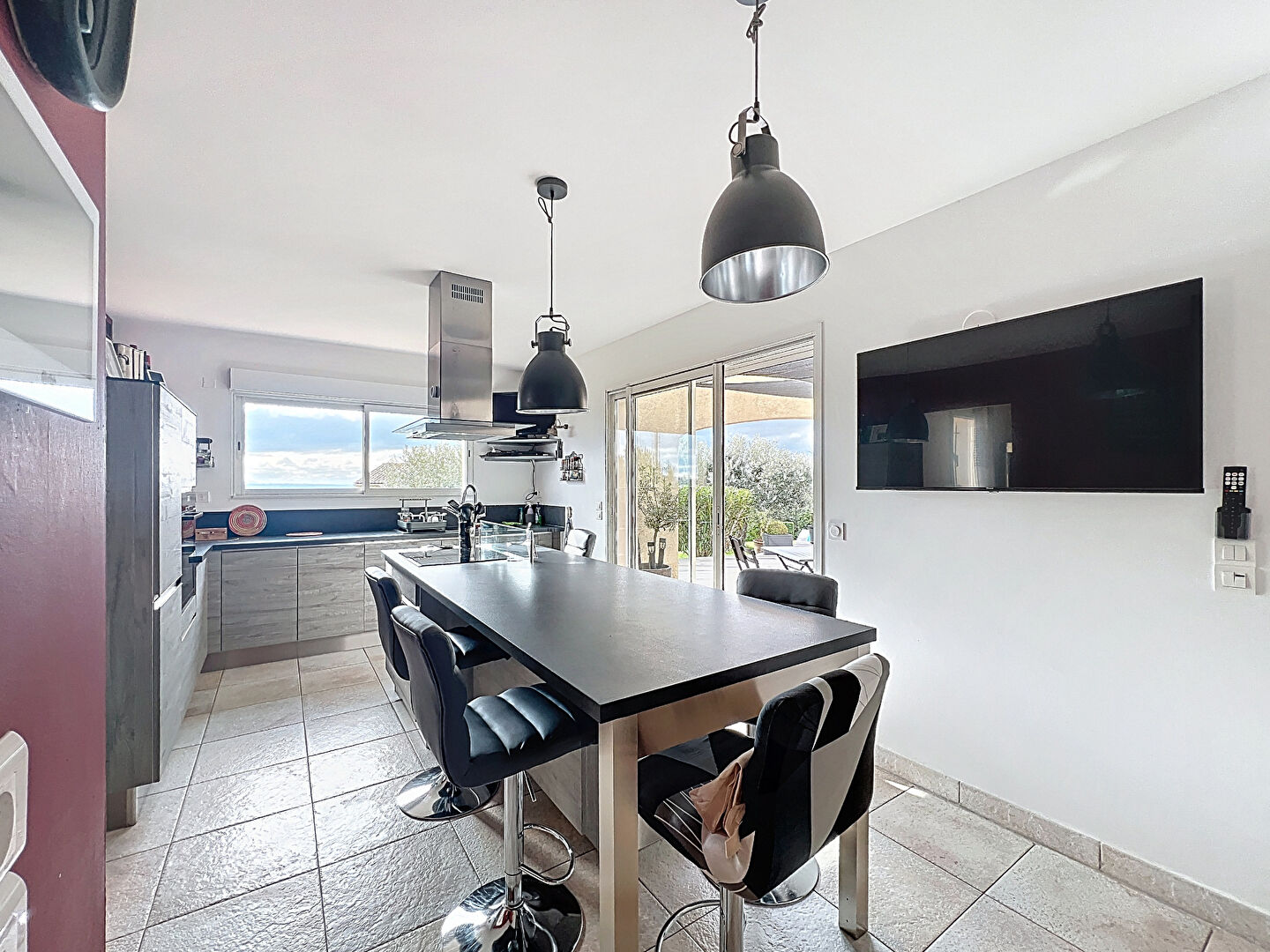 Située en position dominante, cette villa de 185 m² offre calme et confort sur un grand jardin paysager. Belle pièce de vie de 45m², cuisine contemporaine donnant sur un patio, chambres spacieuses, salle de bains et salle d'eau avec grands dressings, chauffage par le sol et climatisation pour un confort optimal toute l'année. À côté : un appartement T2 indépendant, loué à l'année, apportant une source de revenu sécurisée. L'extérieur est un véritable atout ? piscine à débordement, oliviers à rendement, terrasses et vues dégagées. Garage + stationnements. Proche commodités et accès routiers.
