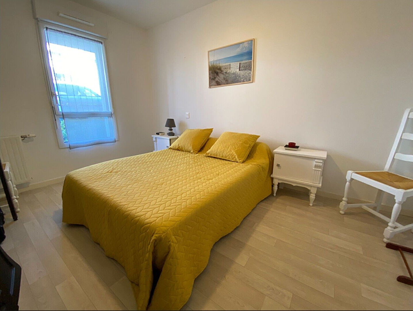 La cuisine aménagée et équipée, ouverte sur le salon-séjour, crée un espace de vie convivial donnant directement accès à une terrasse et un jardin privatif d'environ 50 m², idéal pour profiter des beaux jours.