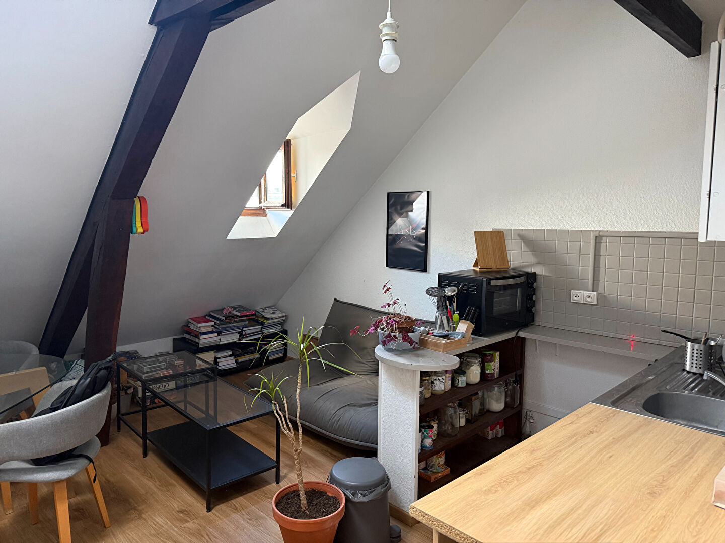 Dès l'entrée, vous serez séduit par son cachet et sa luminosité. La pièce de vie, baignée de lumière, crée une atmosphère cosy et accueillante. La kitchenette, discrètement intégrée, permet un aménagement fonctionnel.